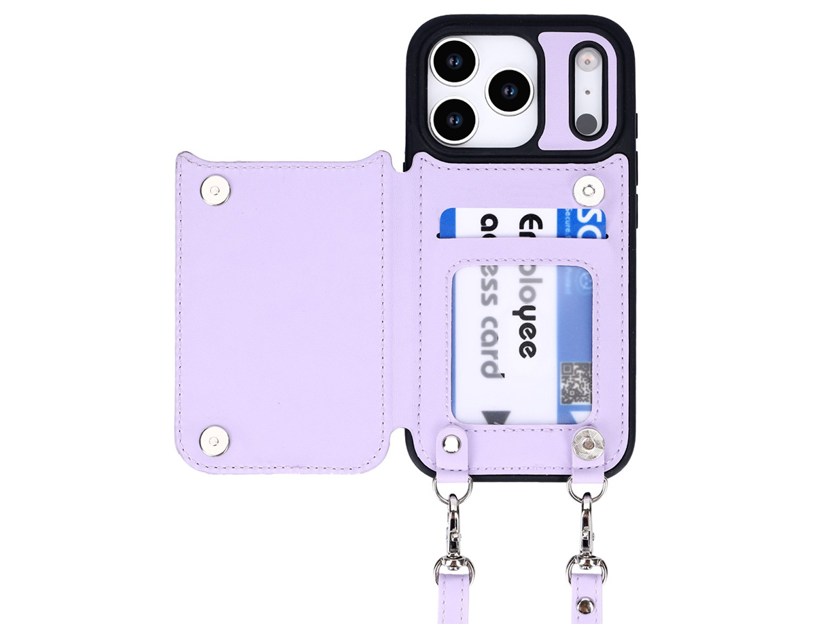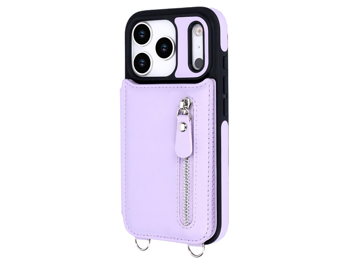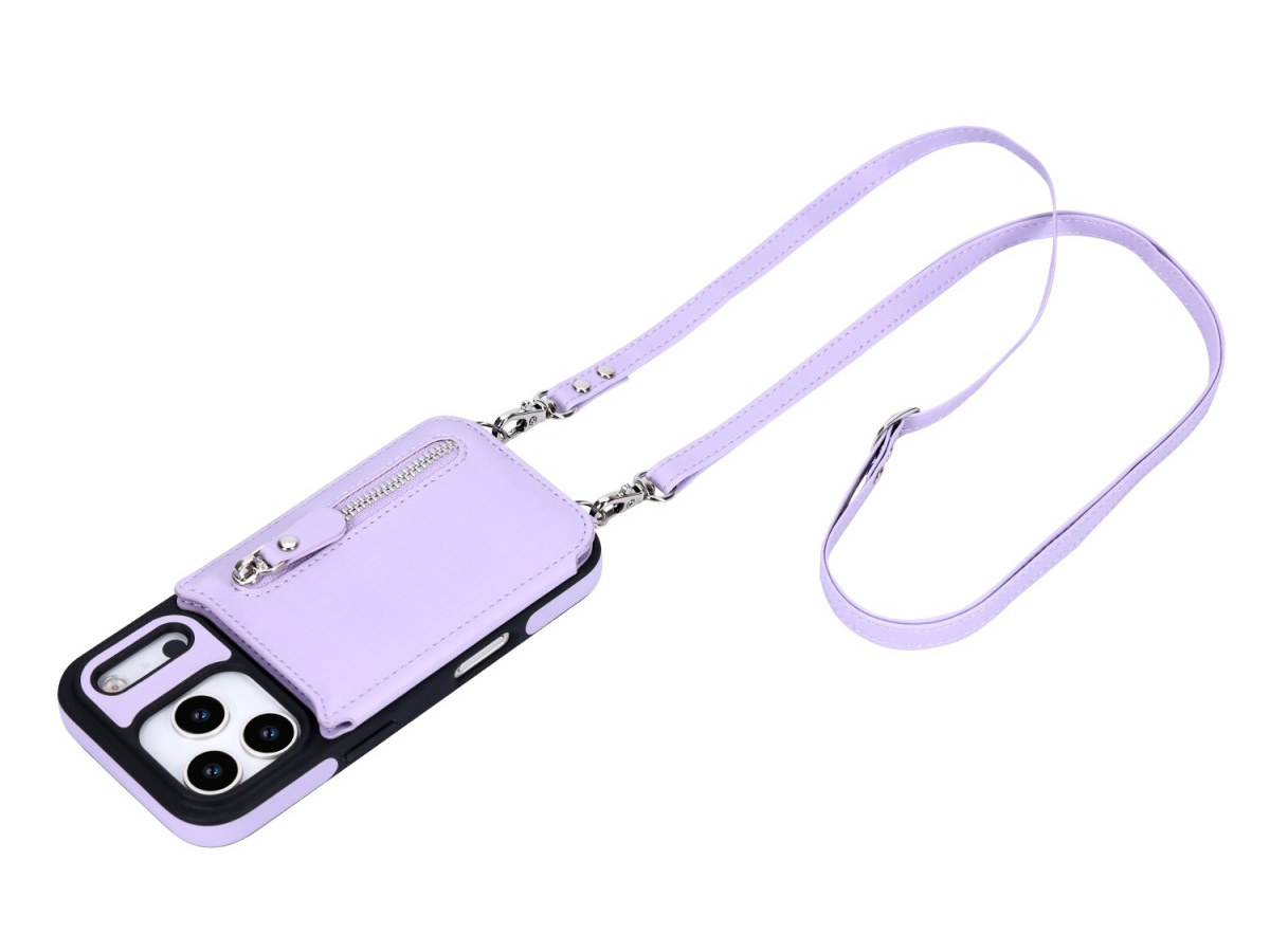 CaseMania Crossbody Wallet Case met Koord - iPhone 17 Pro Hoesje Lila
