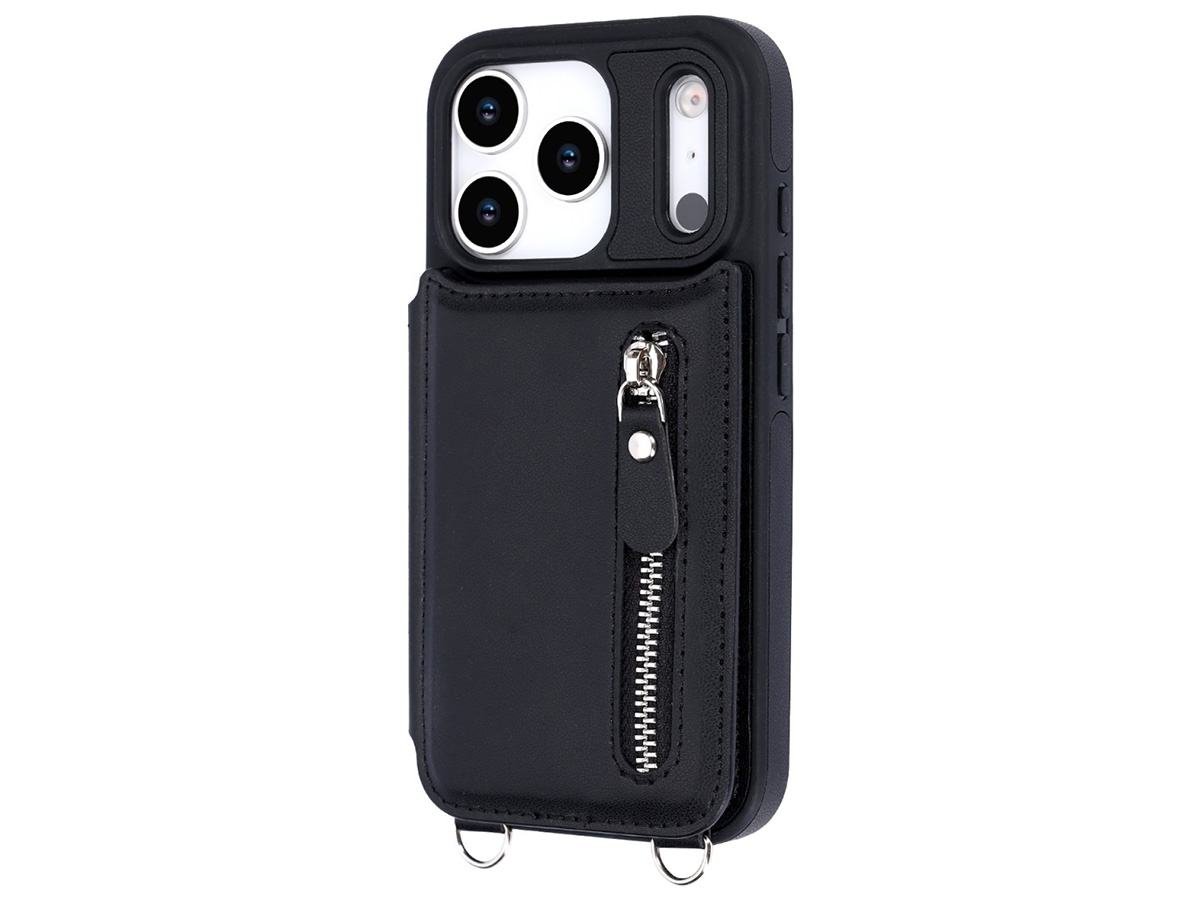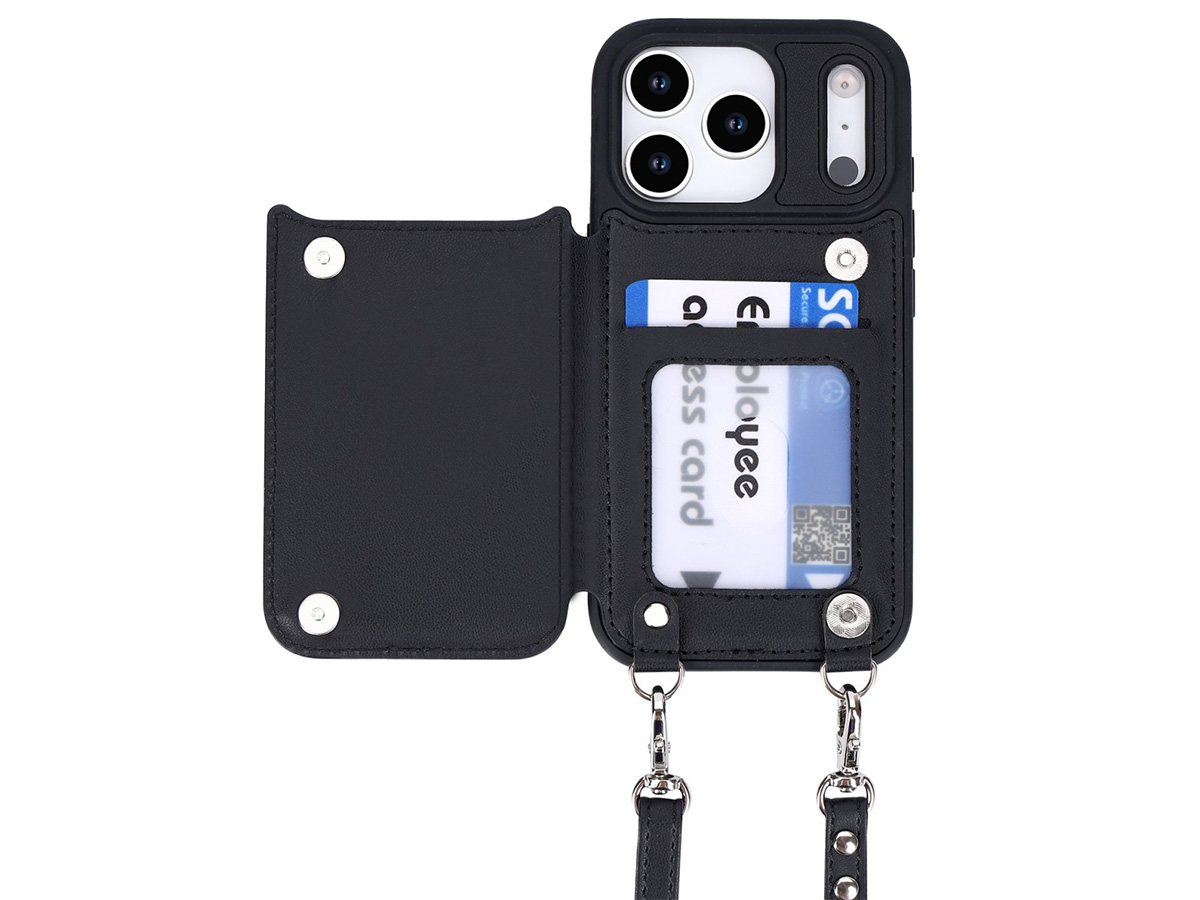 CaseMania Crossbody Wallet Case met Koord - iPhone 17 Pro Hoesje Zwart