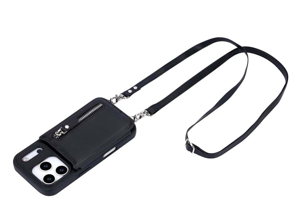 CaseMania Crossbody Wallet Case met Koord - iPhone 17 Pro Max Hoesje Zwart