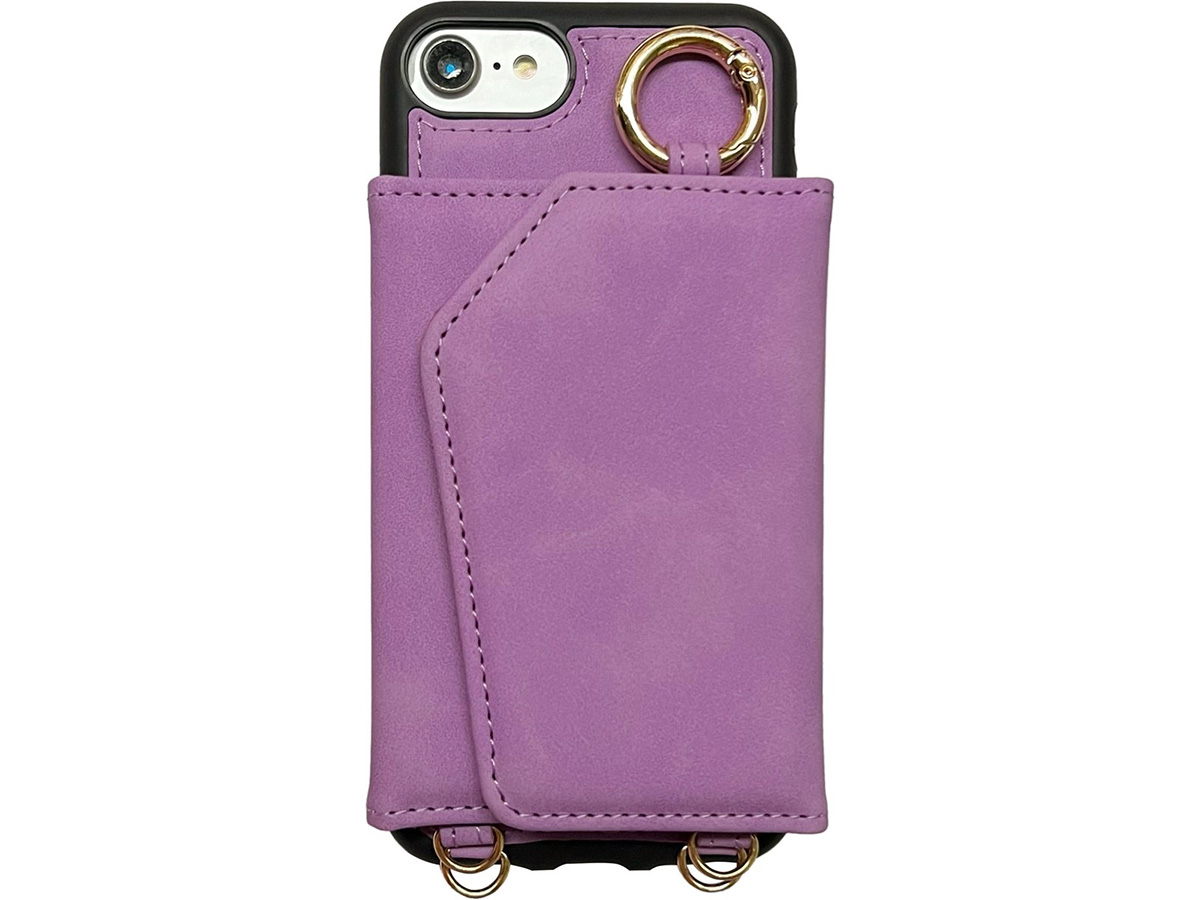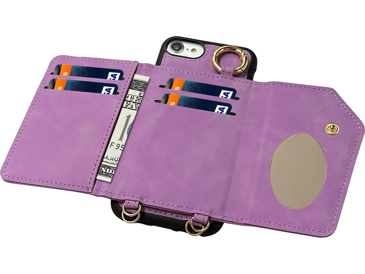 CaseMania Koord Case MagSafe Wallet Spiegel Lila - iPhone SE/8/7 Hoesje