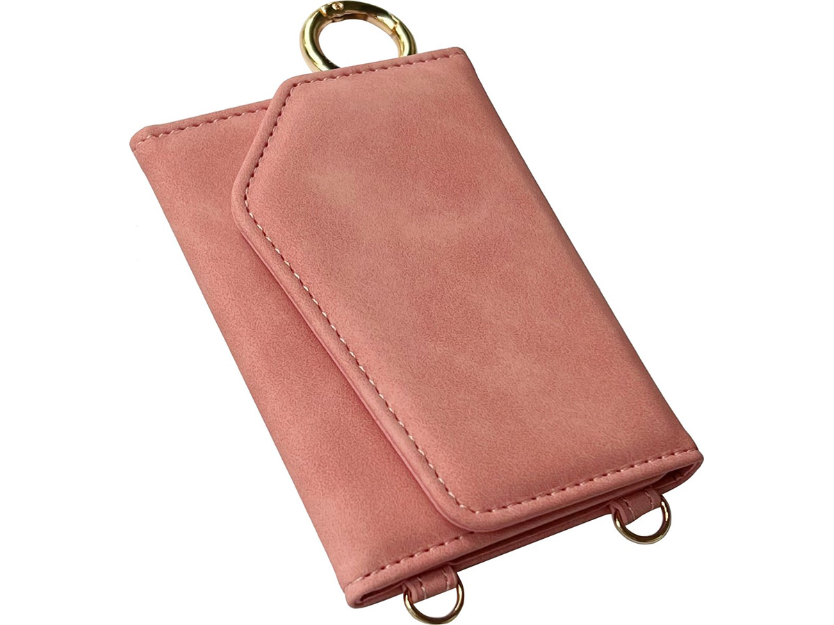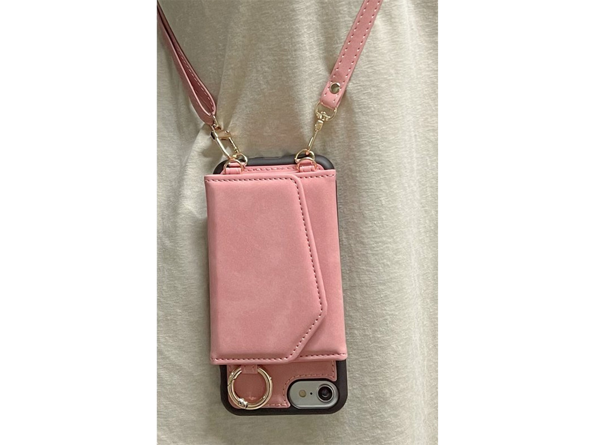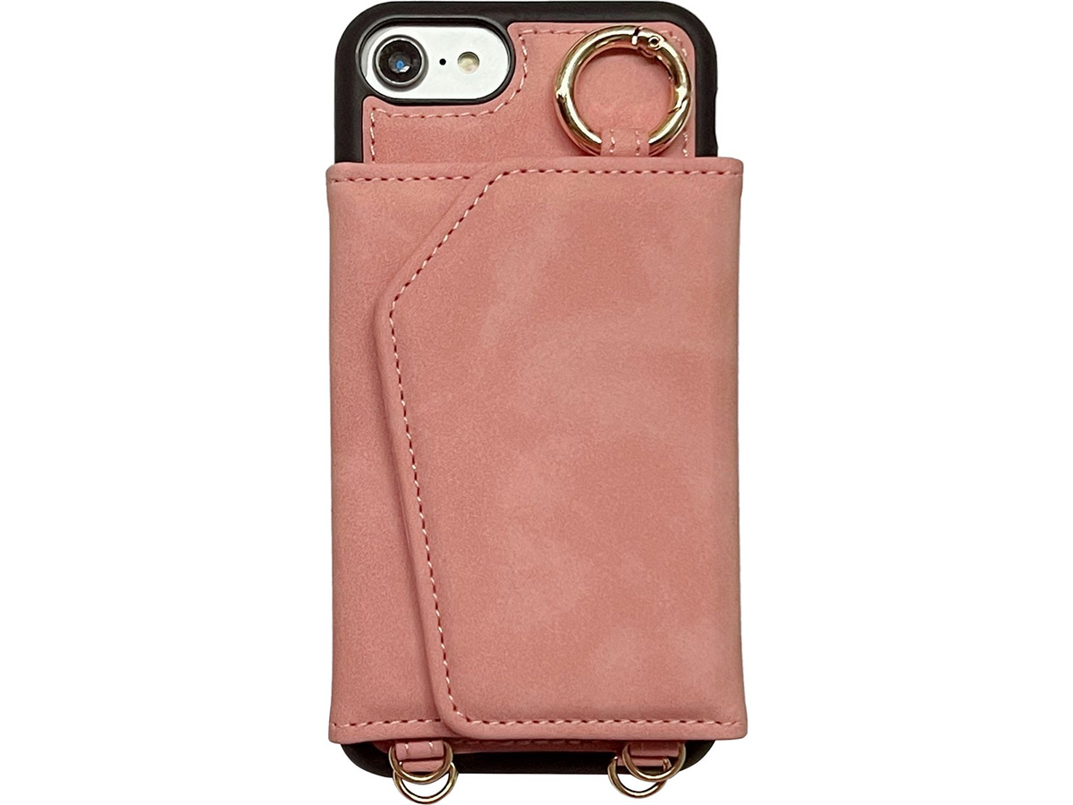 CaseMania Koord Case MagSafe Wallet Spiegel Roze - iPhone SE/8/7 Hoesje