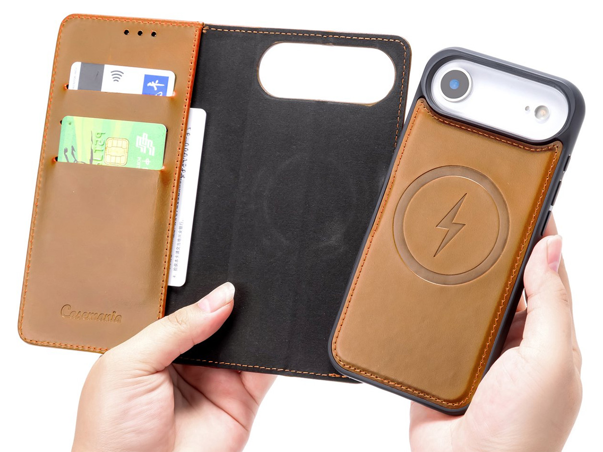 CaseMania 2in1 Leather Bookcase Tan - iPhone 17 Air Hoesje Leer