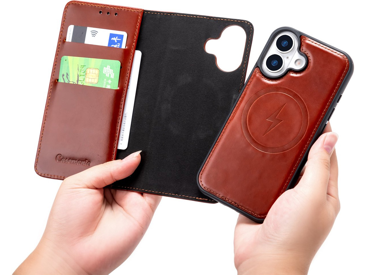 Dit fraaie leren iPhone 17 hoesje van CaseMania biedt naast bescherming handige 2-in-1 functionaliteit én compatabiliteit met MagSafe. De case is uitgevoerd in hoogwaardig leer met een stoere, vintage look die fraai afsteekt tegen de moderne uitstraling van de iPhone zelf. De case is verkrijgbaar in verschillende fraaie kleuren.