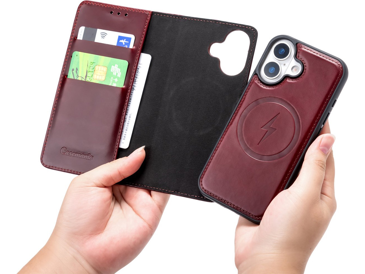 CaseMania 2in1 Leather Bookcase Bordeaux - iPhone 17 Hoesje Leer