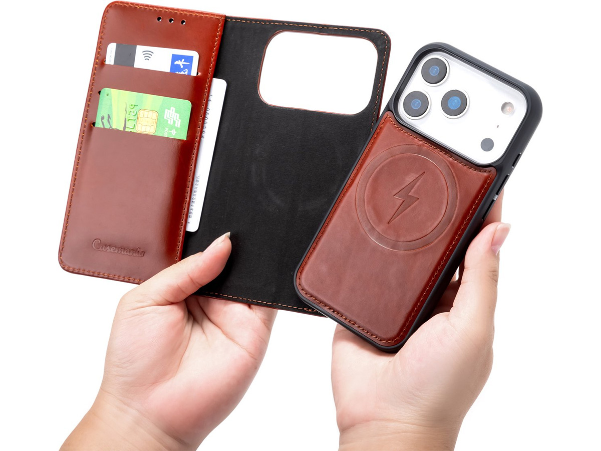CaseMania 2in1 Leather Bookcase Cognac - iPhone 17 Pro Max Hoesje Leer