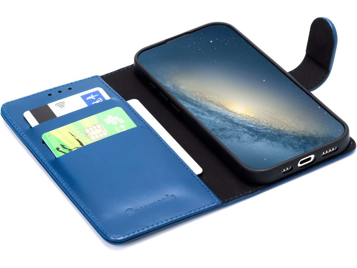 CaseMania Leather Bookcase Blauw - iPhone 17e / 16e Hoesje Leer