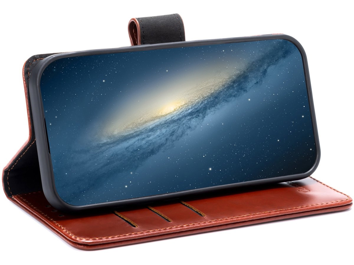CaseMania Leather Bookcase Cognac - iPhone 17e / 16e Hoesje Leer