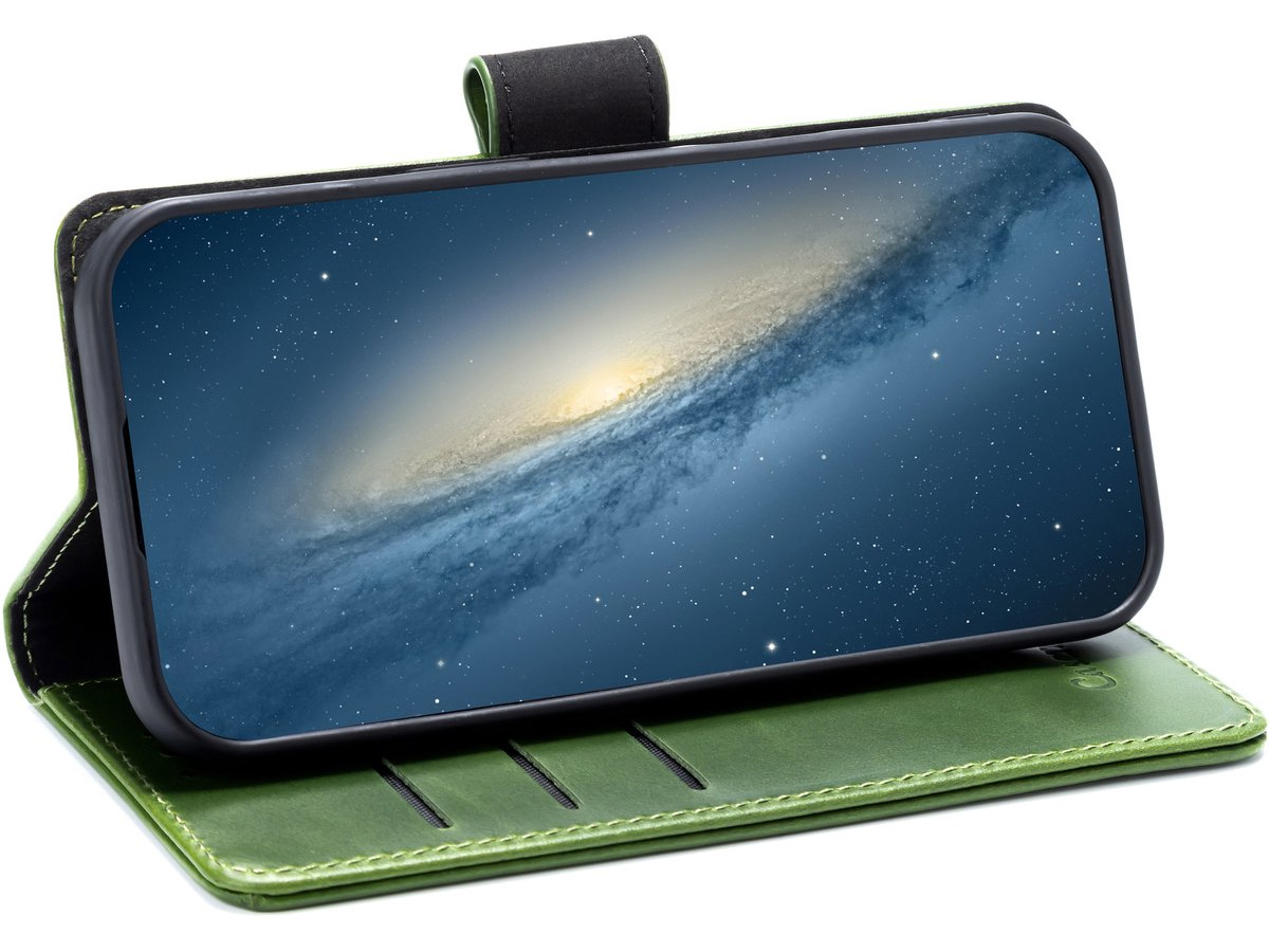 CaseMania Leather Bookcase Groen - iPhone 17e / 16e Hoesje Leer