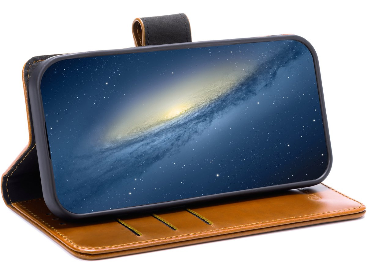CaseMania Leather Bookcase Tan - iPhone 17e / 16e Hoesje Leer