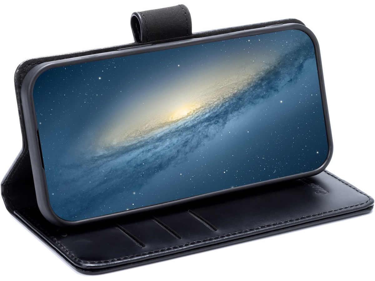 CaseMania Leather Bookcase Zwart - iPhone 17e / 16e Hoesje Leer