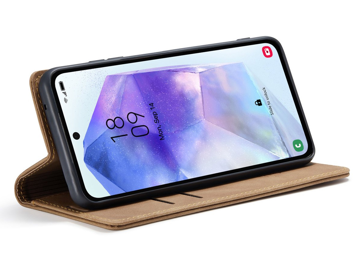 Dit slanke Samsung Galaxy S26 boek hoesje van CaseMania is uitgevoerd in hoogwaardig kunstleer met een prachtige vintage look die mooi afsteekt tegen de moderne look van het toestel zelf. De case is verkrijgbaar in verschillende fraaie kleuren.