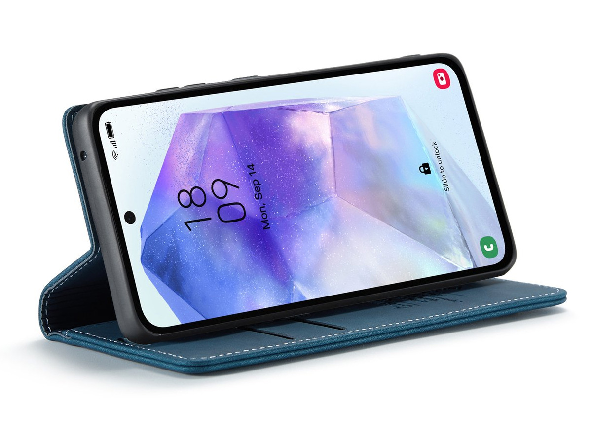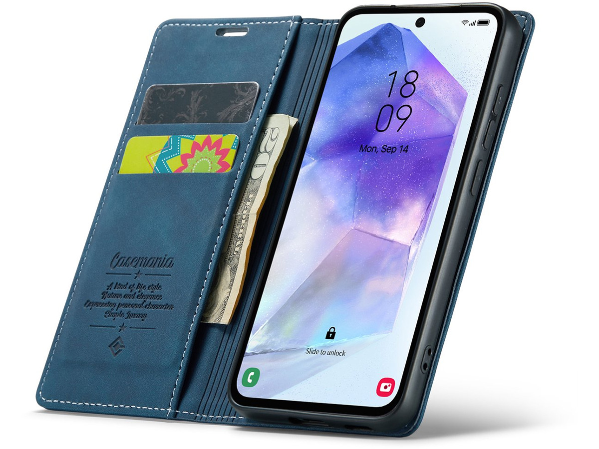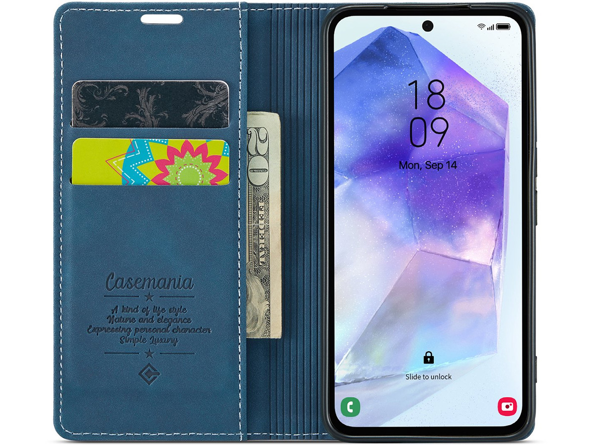 CaseMania Vintage Slim Bookcase Donkerblauw - Samsung Galaxy S26 hoesje