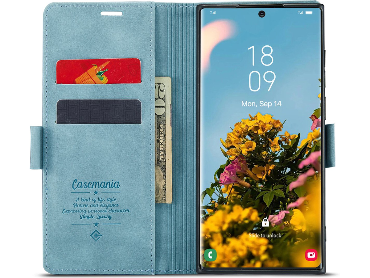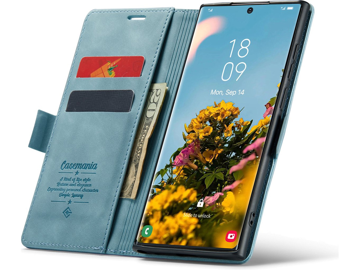 Dit slanke Samsung Galaxy S26 Ultra boek hoesje van CaseMania is uitgevoerd in hoogwaardig kunstleer met een prachtige vintage look die mooi afsteekt tegen de moderne look van het toestel zelf. De case is verkrijgbaar in verschillende fraaie kleuren.