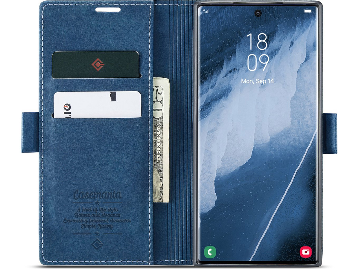 CaseMania Vintage Slim Bookcase Donkerblauw - Samsung Galaxy S26 Ultra hoesje