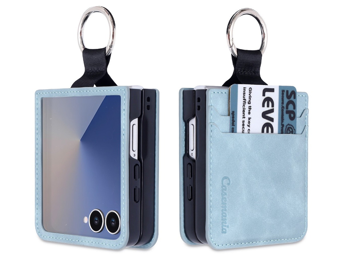Dit CaseMania hoesje voor de Galaxy Z Flip 7 biedt meer dan bescherming alleen. Zo vindt u achterop de case drie handige pasvakjes voor uw passen en kaarten. Daarnaast is de case voorzien van een metalen karabijnhaak waarmee u uw toestel eenvoudig kunt vastclippen.