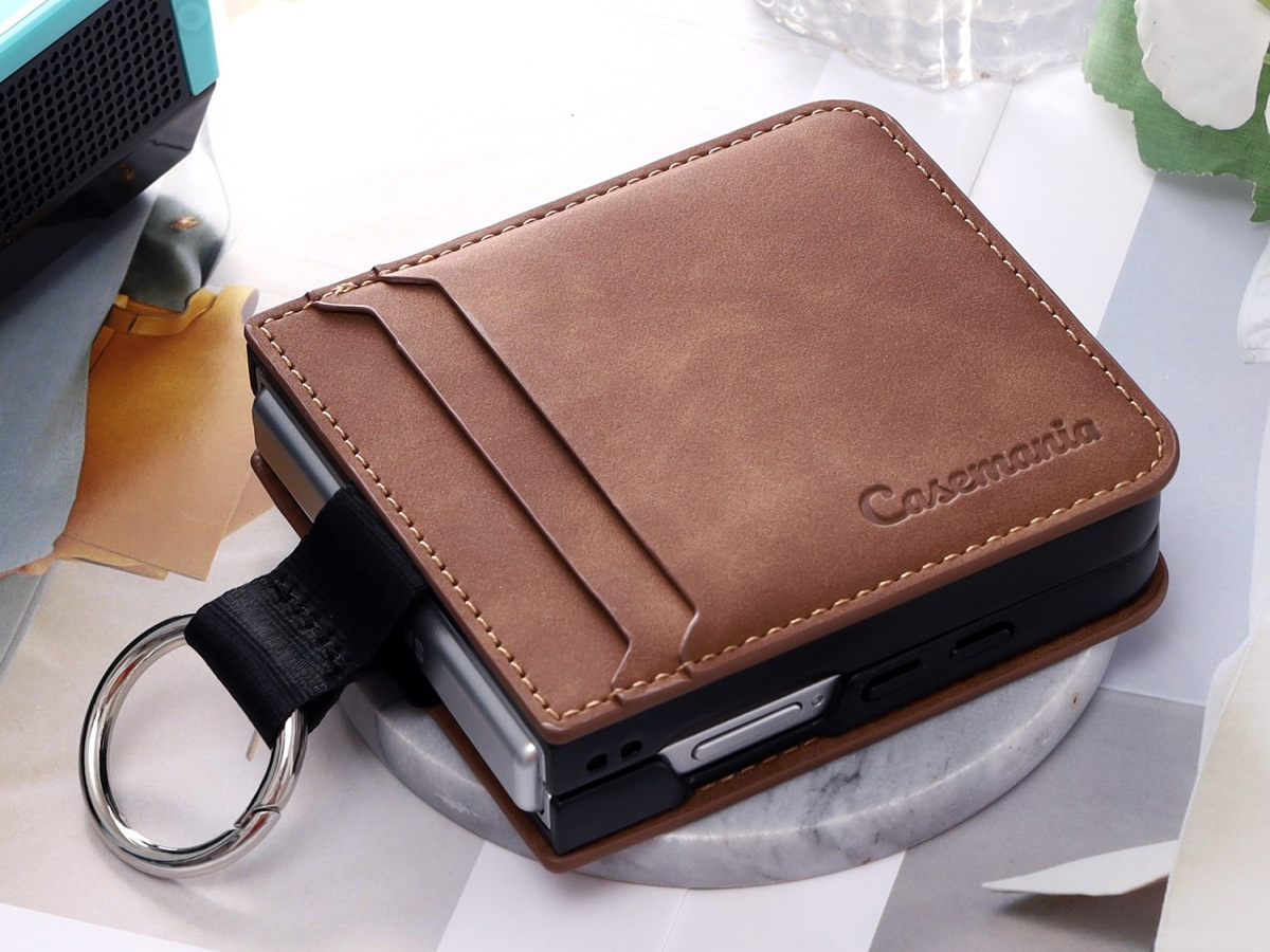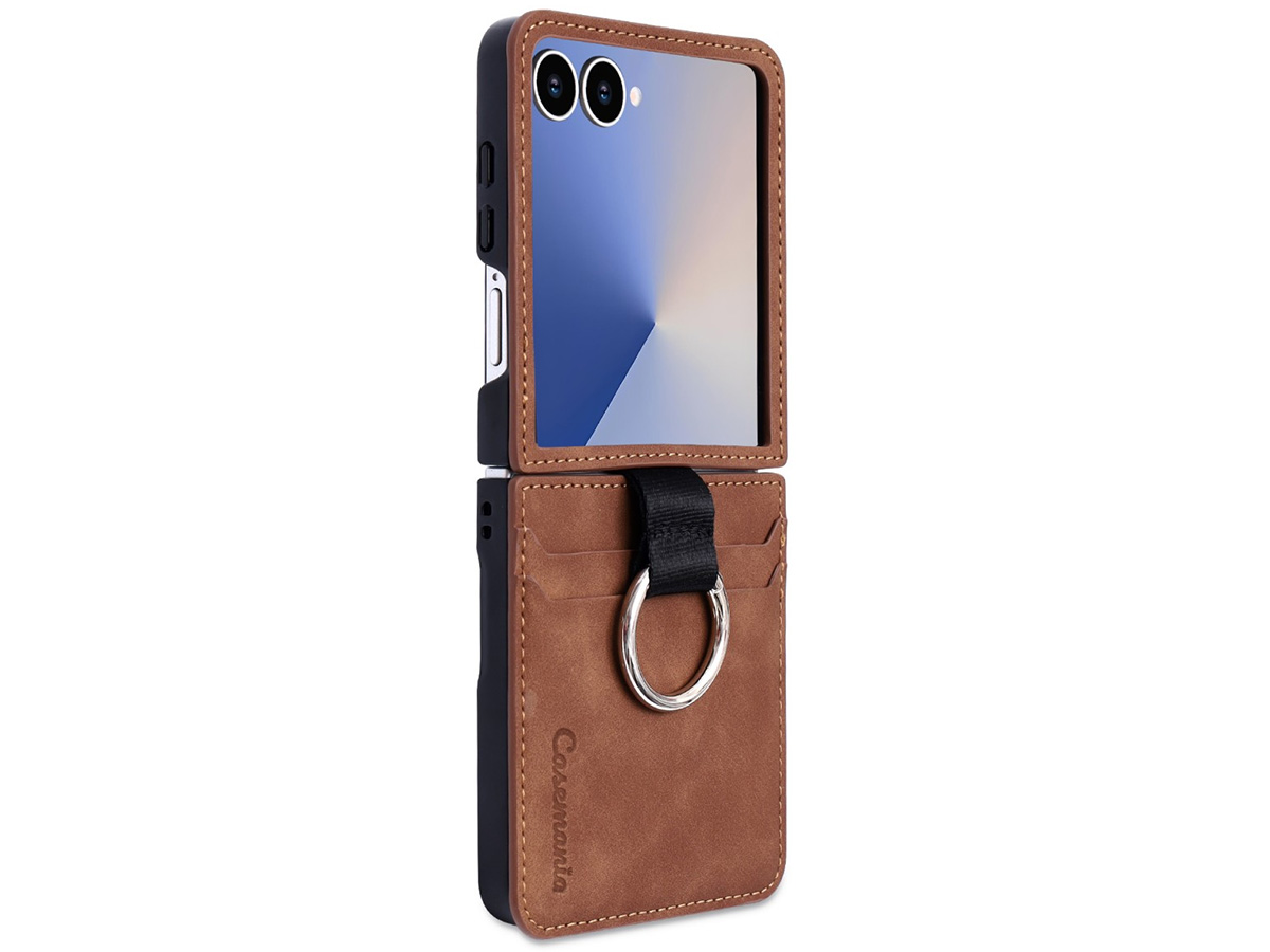 CaseMania Vintage Slim Wallet Case Cognac - Samsung Galaxy Z Flip 7 hoesje