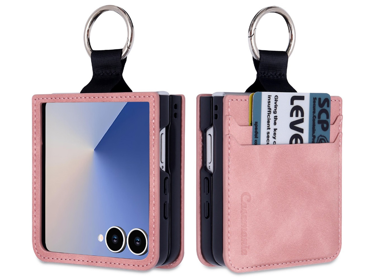 Dit CaseMania hoesje voor de Galaxy Z Flip 7 biedt meer dan bescherming alleen. Zo vindt u achterop de case drie handige pasvakjes voor uw passen en kaarten. Daarnaast is de case voorzien van een metalen karabijnhaak waarmee u uw toestel eenvoudig kunt vastclippen.