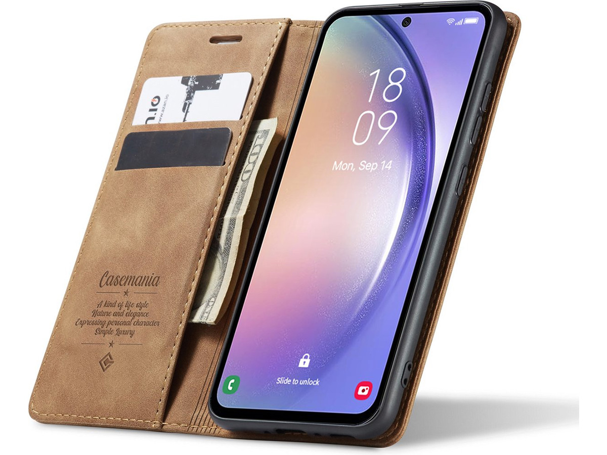 CaseMania Vintage Slim Bookcase Bruin - Samsung Galaxy A53 hoesje