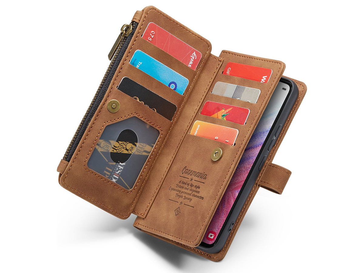 CaseMania Ritsvak Wallet Case Bruin - Samsung Galaxy S24+ Hoesje