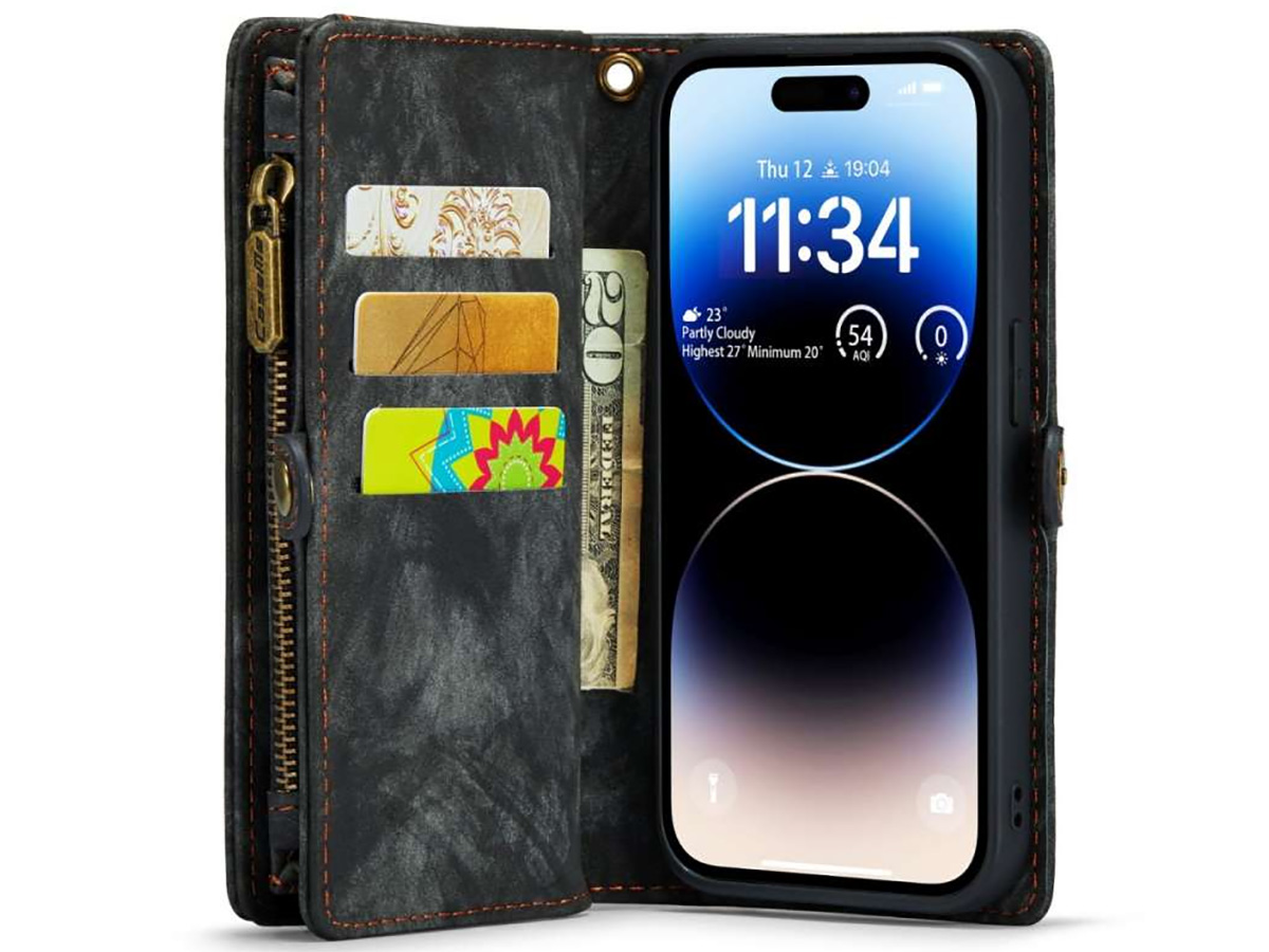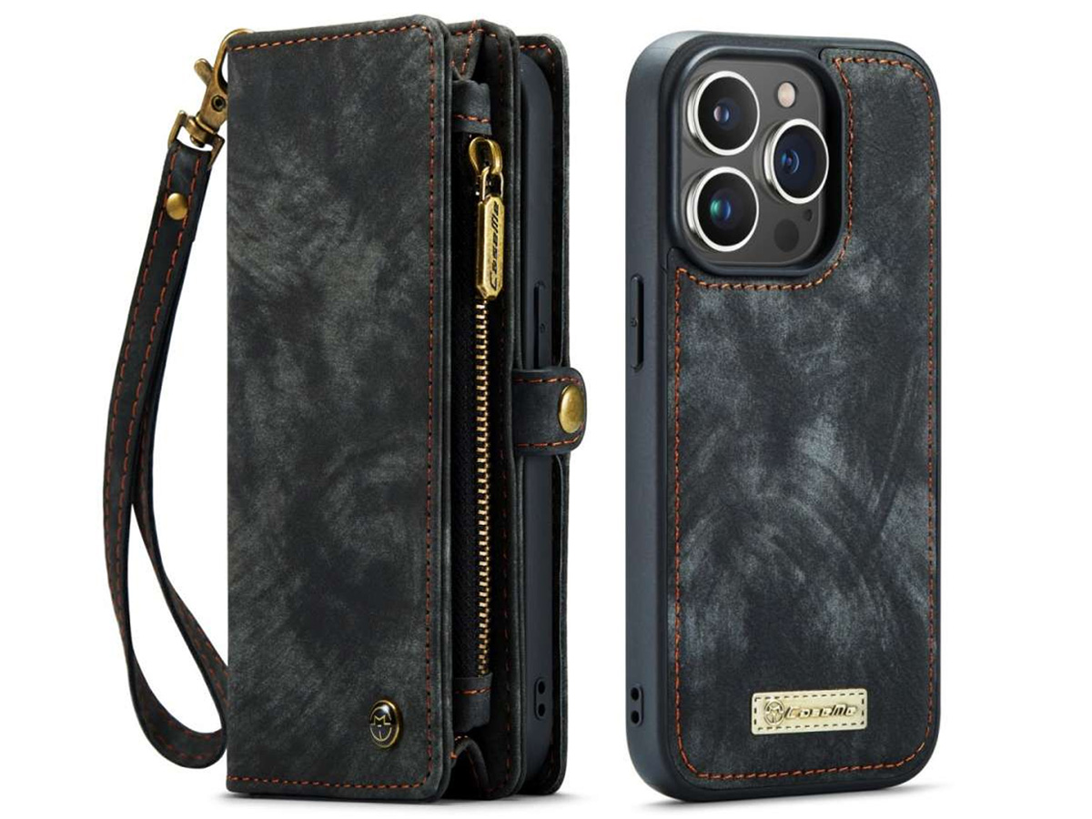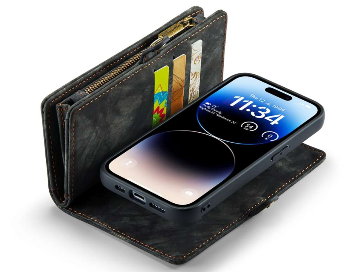 CaseMe 2in1 Wallet Case met Ritsvak Zwart - iPhone 15 Pro Hoesje