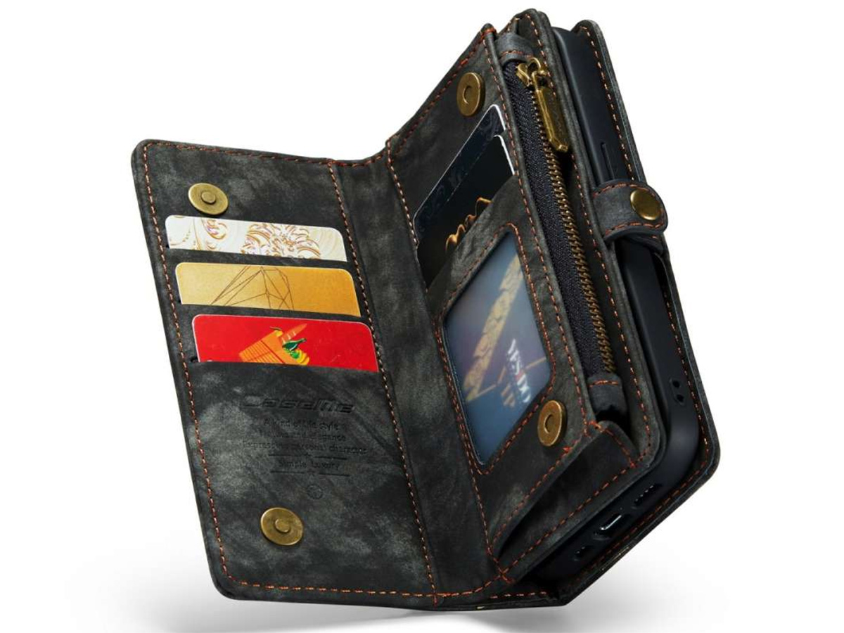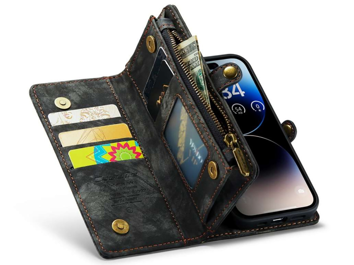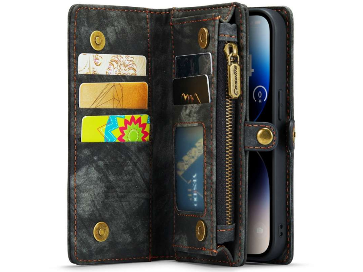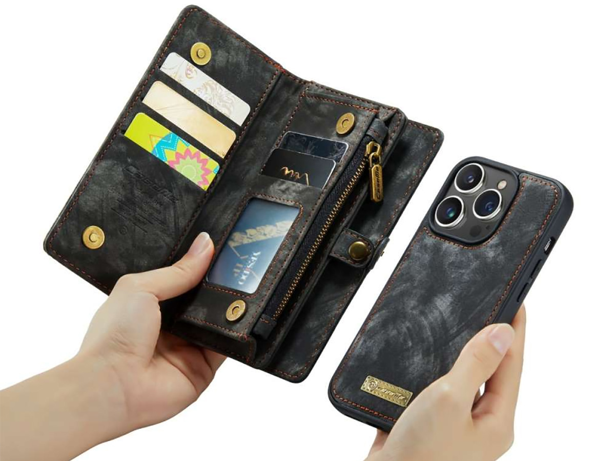 CaseMe 2in1 Wallet Case met Ritsvak Zwart - iPhone 15 Pro Hoesje