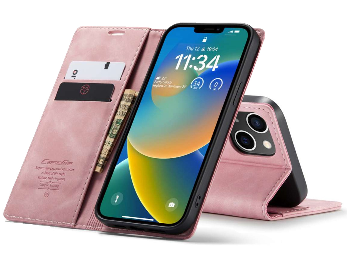 CaseMania Vintage Slim Bookcase Roze - iPhone 14 hoesje