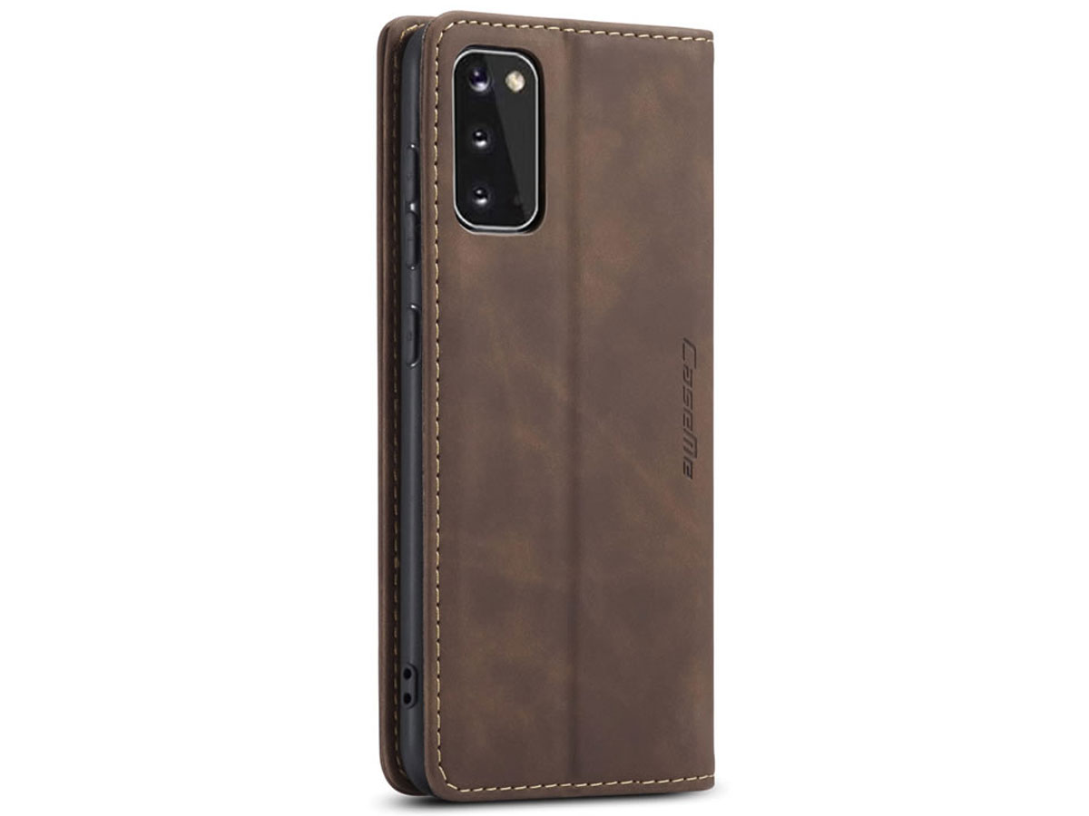 CaseMe Vintage BookCase Coffee - Samsung Galaxy S20 hoesje