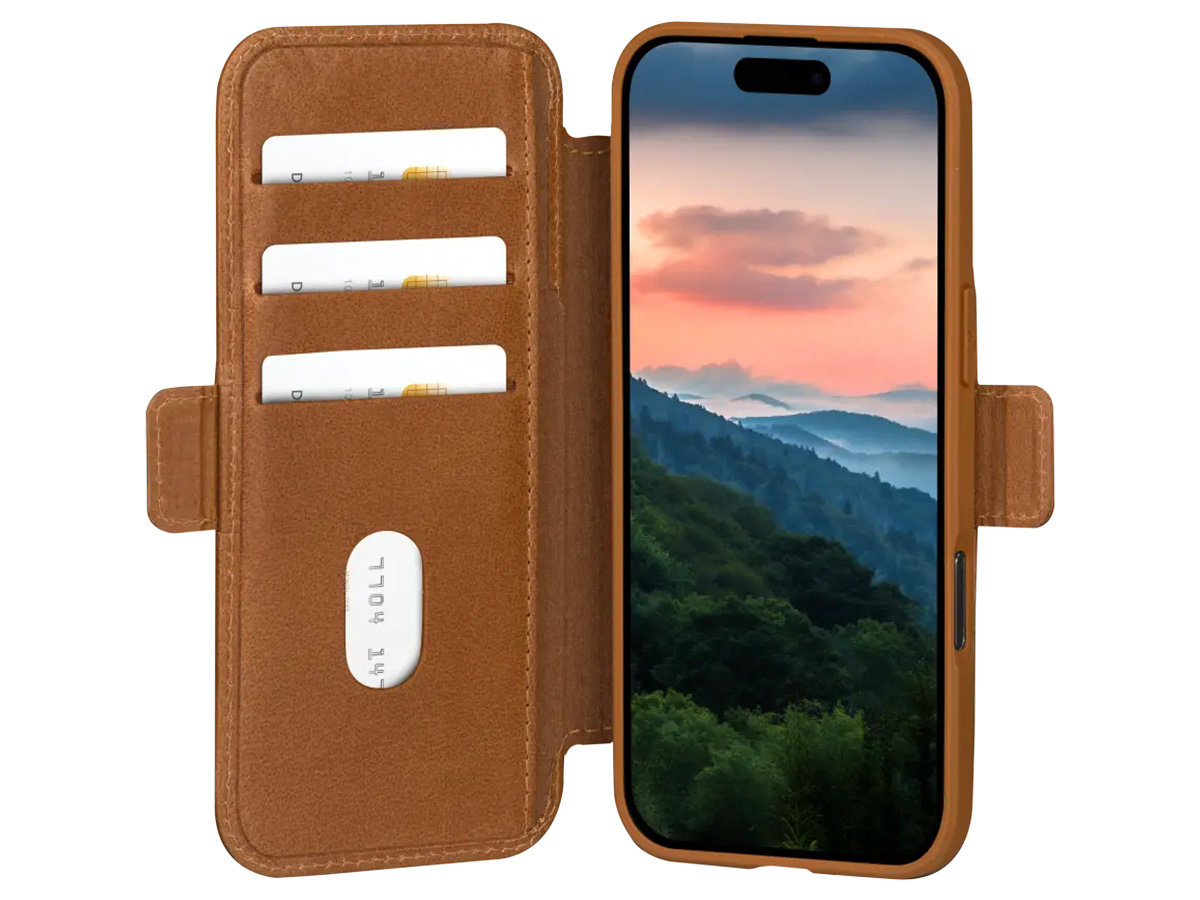 De dbramante1928 Copenhagen voor iPhone 17 is een klassieke bookcase die uw toestel volledig rondom beschermt en handige bergruimte biedt. De klep over het scherm sluit veilig af met een kleine magneetsluiting op de zijkant, waardoor de voor- en achterzijde van het iPhone 17 hoesje volledig vlak blijven. Hierdoor glijdt de case soepel in een broekzak of vakje in uw tas.