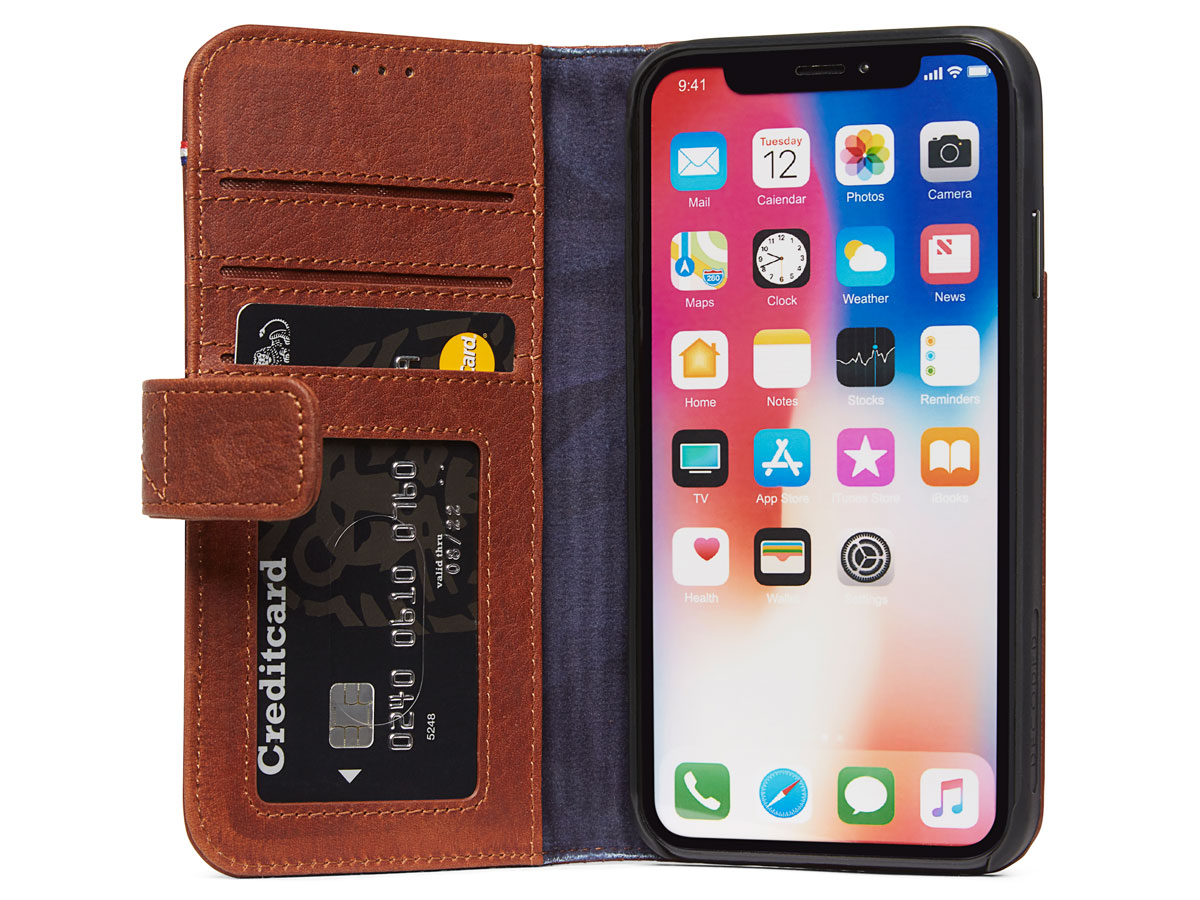 Decoded Drop Protection Wallet Bruin Leer - iPhone X/Xs Hoesje