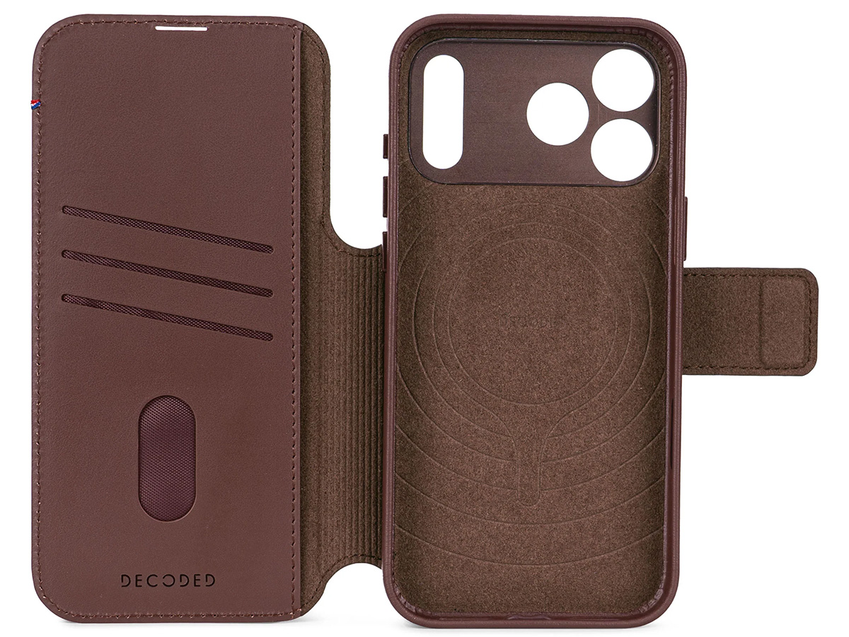 De Decoded Detachable Leather Wallet iPhone 17 Pro Max case is volledig compatible met MagSafe. In de uitneembare cover is de benodigde magnetische ring te vinden waarop u MagSafe accessoires zoals opladers, standaards, autohouders, powerbanks en meer kunt bevestigen.