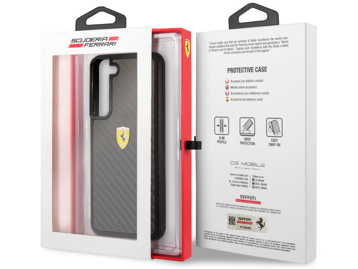Ferrari Carbon Fiber Case Zwart - Samsung Galaxy S22+ Hoesje