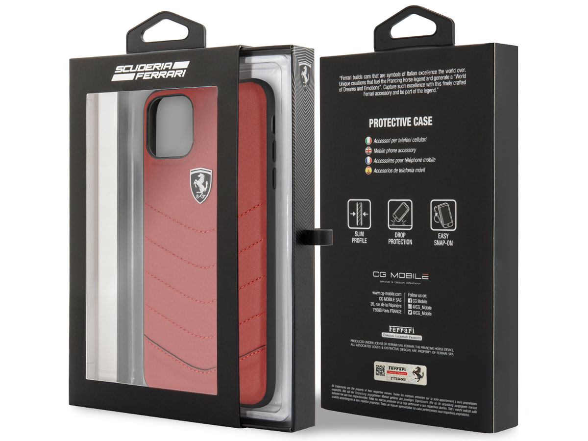 Ferrari Quilted Leather Case Rood - iPhone 11 Pro Max Hoesje