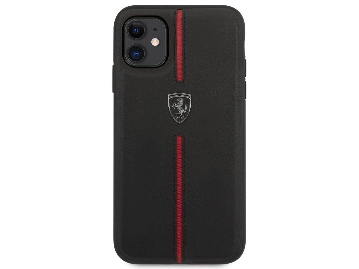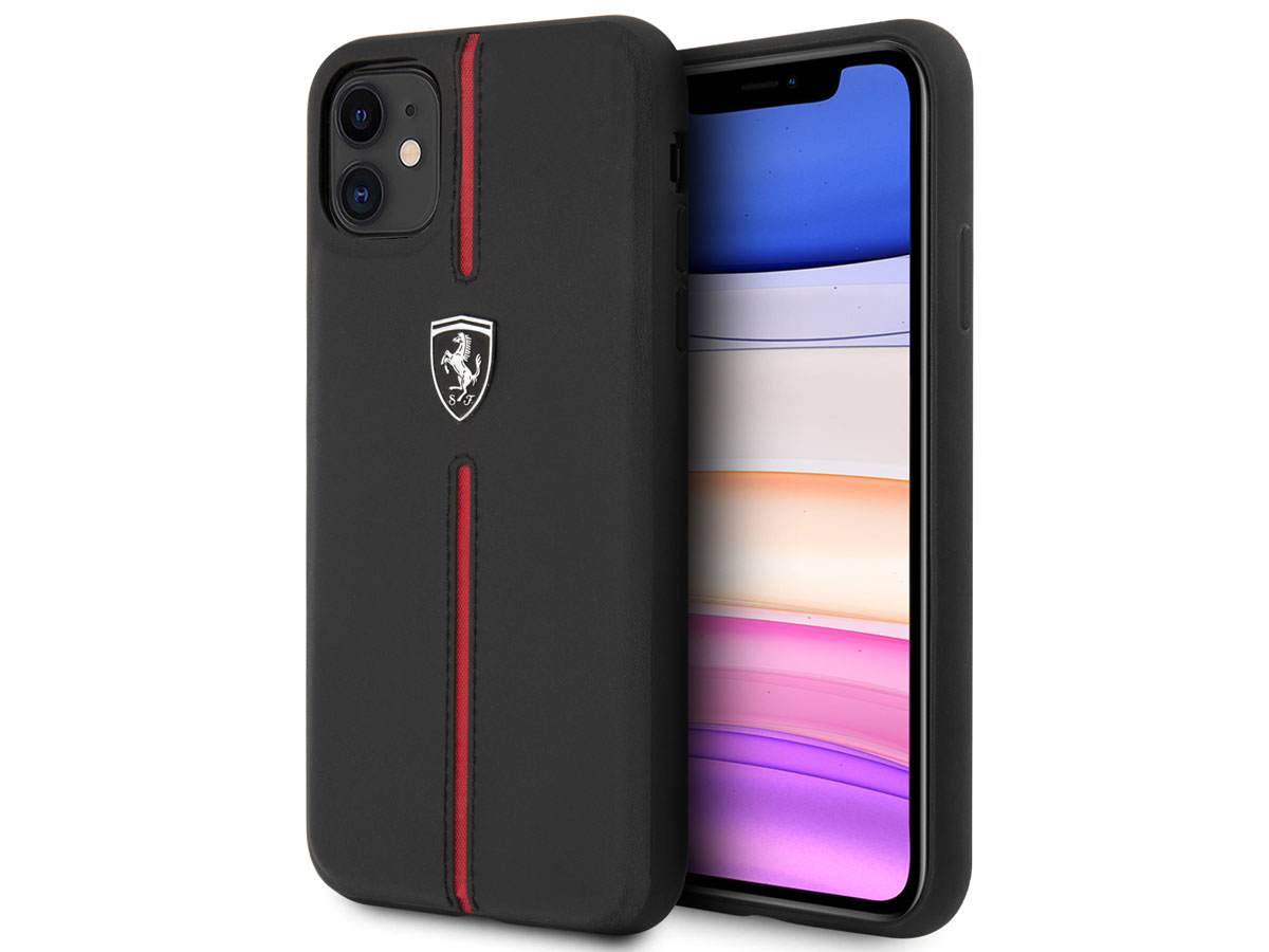 Ferrari Off Track Leather Case Zwart - iPhone 11/XR Hoesje