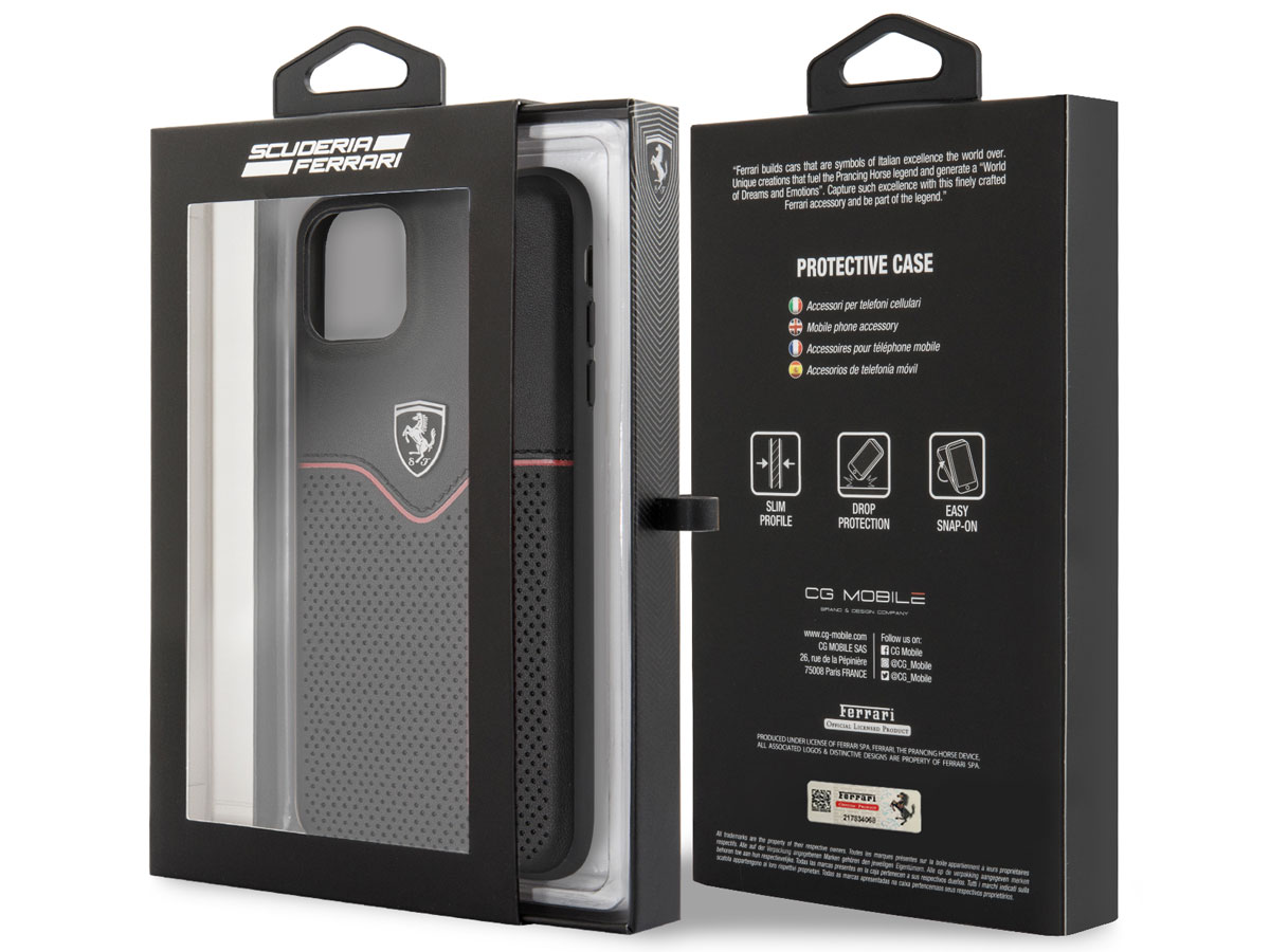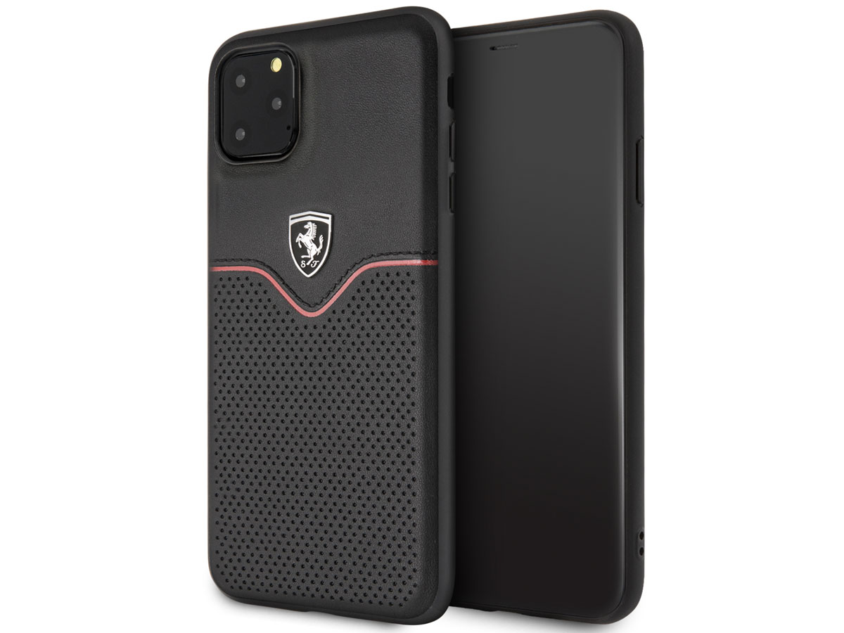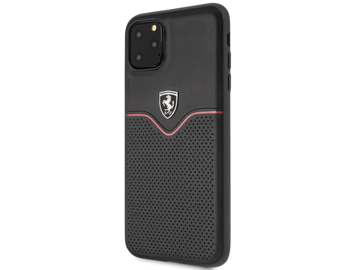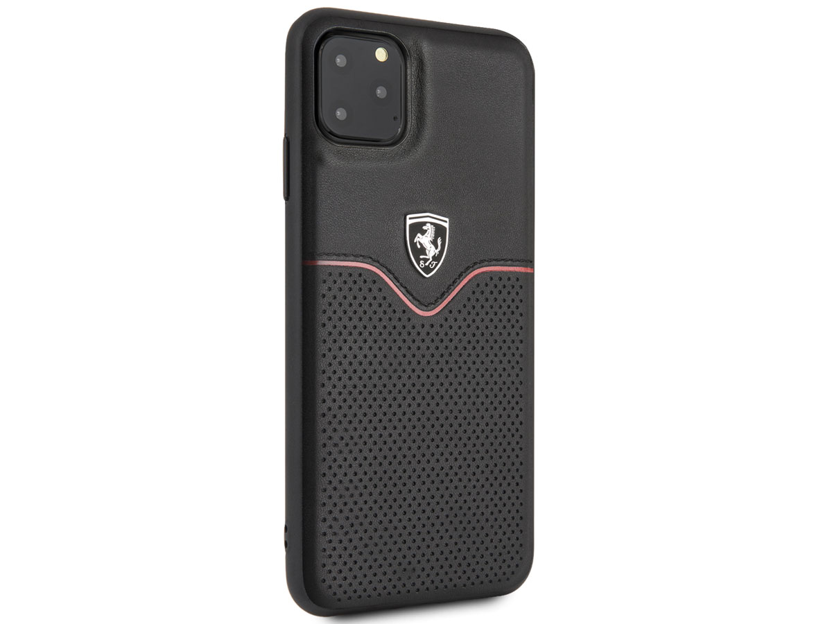 Ferrari Perforated Leather Case Zwart - iPhone 11 Pro Max Hoesje