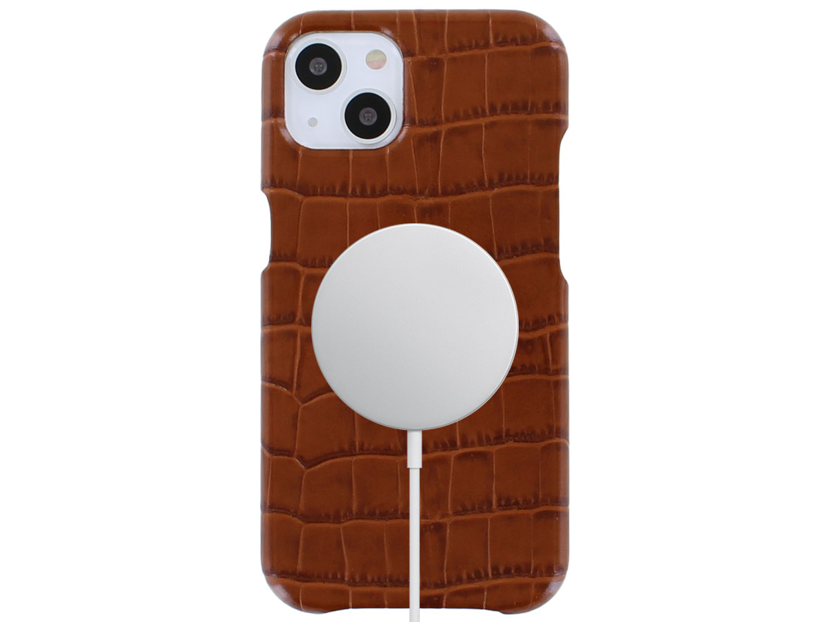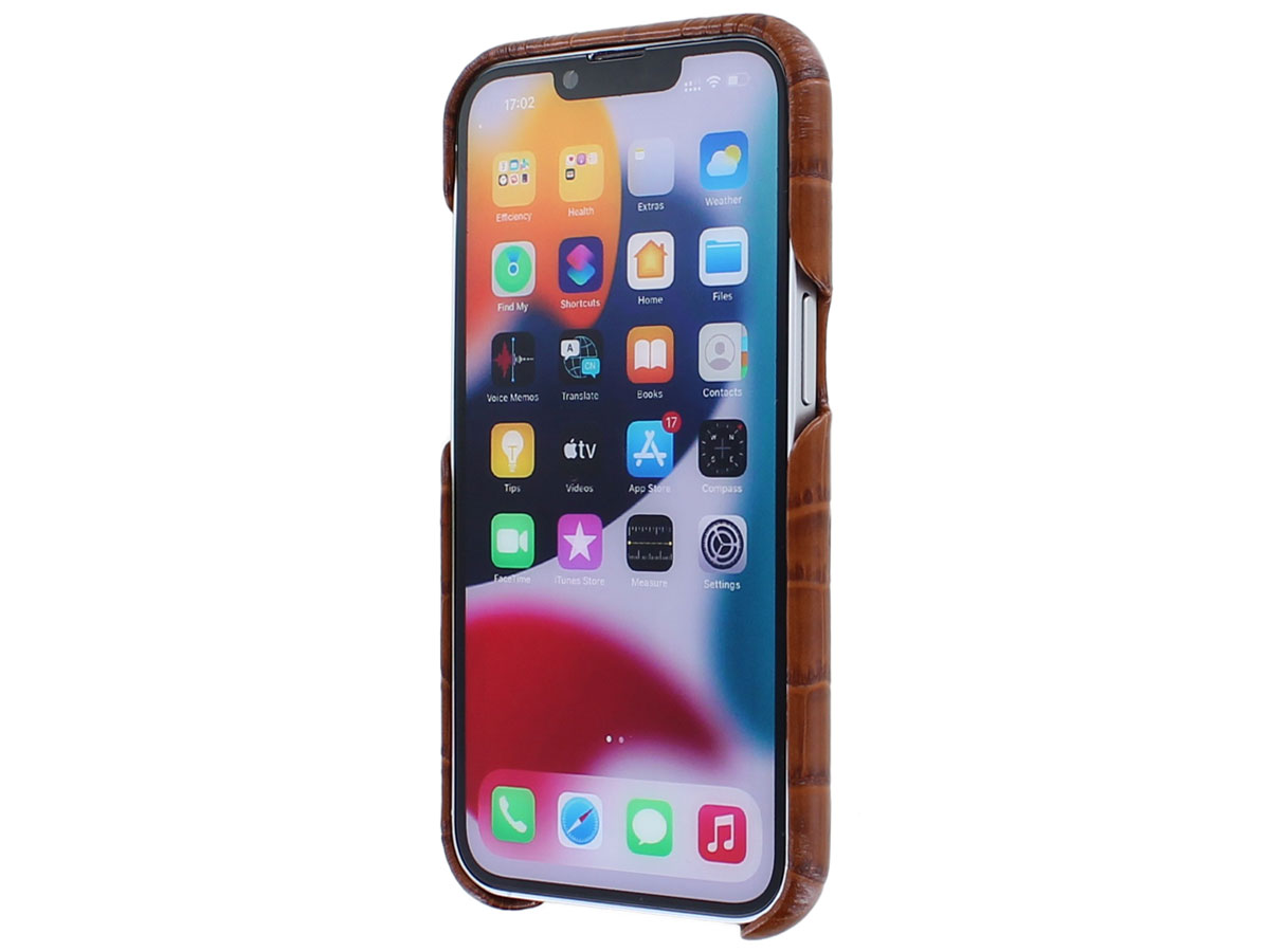 Graffi Shell Croco Cognac Leer - iPhone 13 hoesje