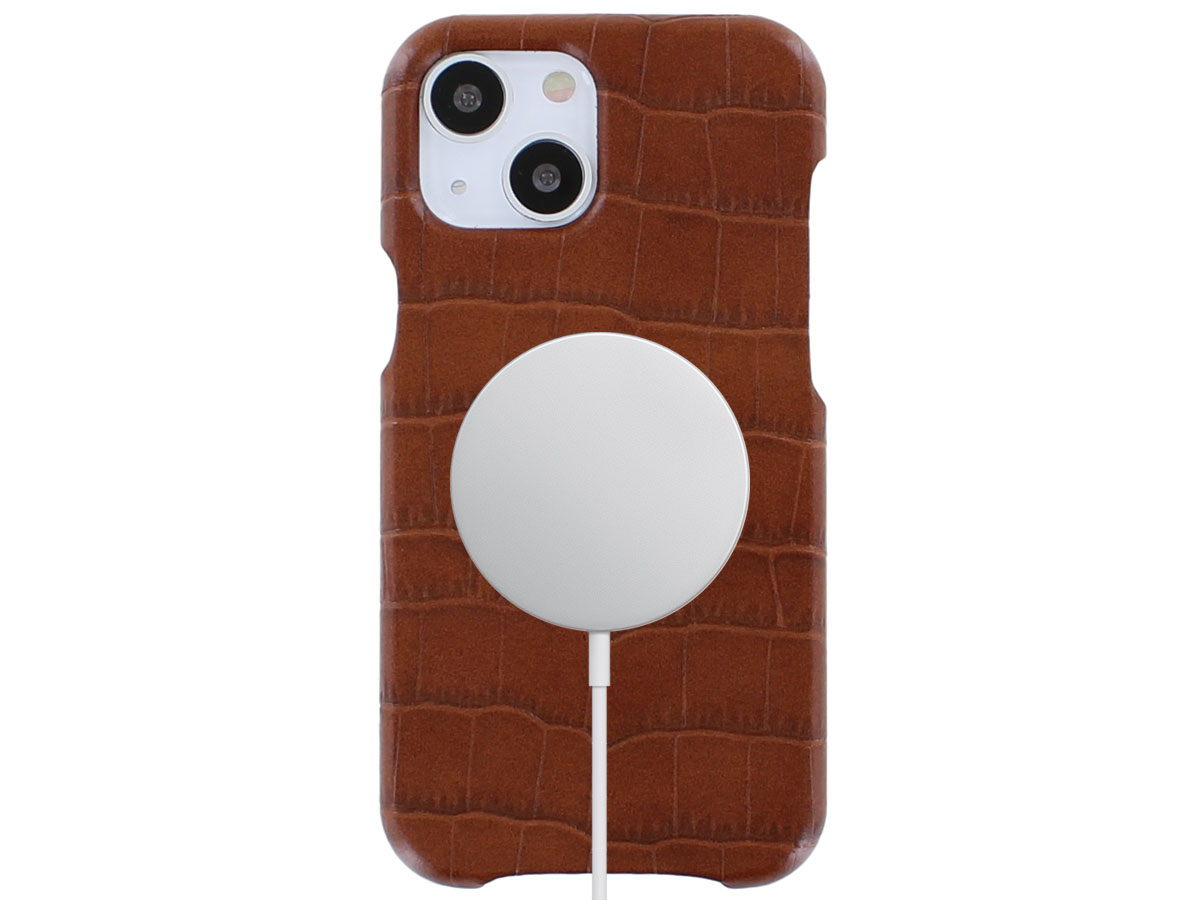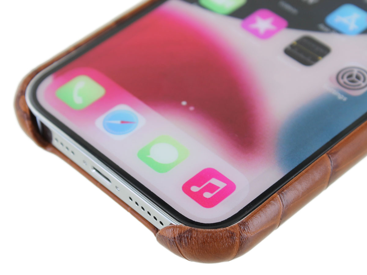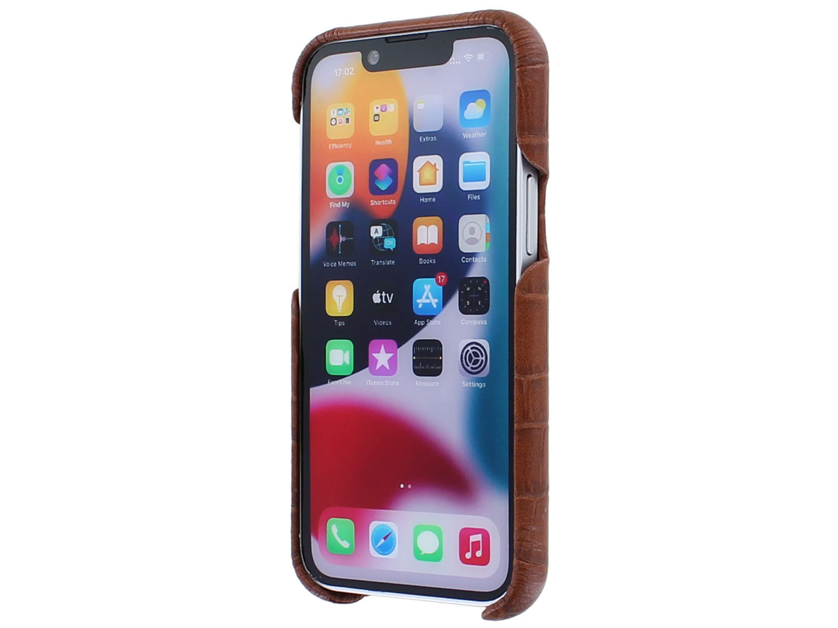 Graffi Shell Croco Cognac Leer - iPhone 13 Mini hoesje