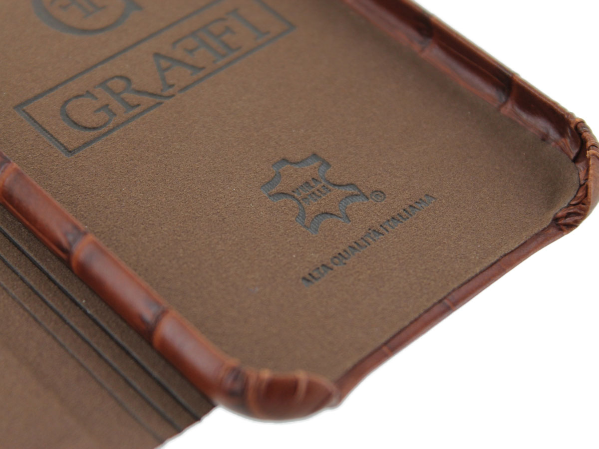 Dit echt leren Graffi iPhone hoesje is uitgevoerd in prachtig cognac leer met een zeer realistische croco-look. Het Italiaanse leer straalt één en al kwaliteit uit en biedt daardoor veel meer dan bescherming alleen.