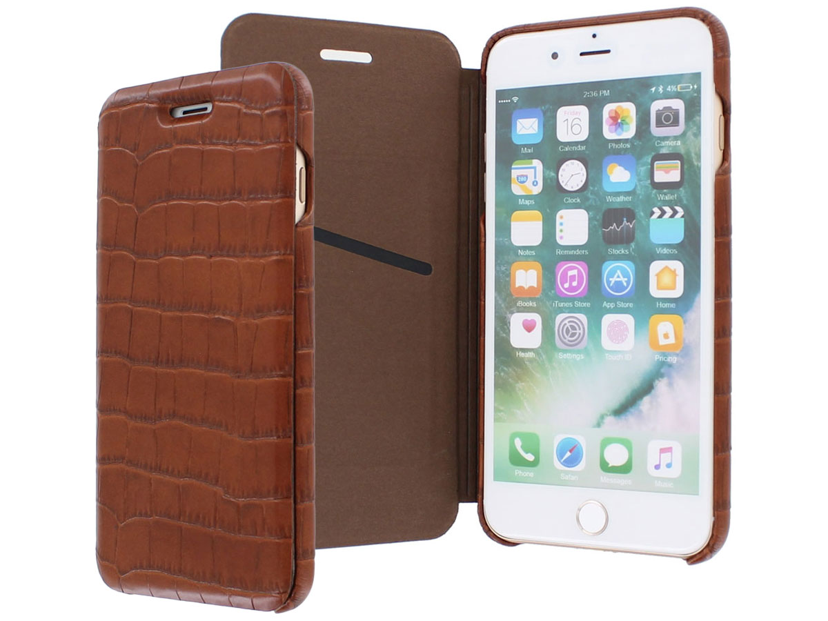 Graffi Oyster Folio Croco Cognac Leer - iPhone 8+/7+/6+ hoes