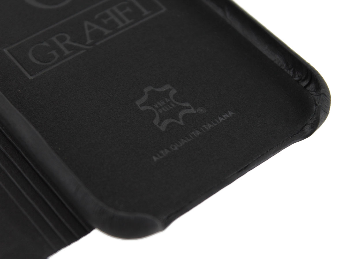 Dit prachtige echt leren Graffi iPhone hoesje is uitgevoerd in zwart leer dat door een speciale bewerking zeer zacht aanvoelt. Het Italiaanse leer straalt één en al kwaliteit uit en biedt daardoor veel meer dan bescherming alleen.