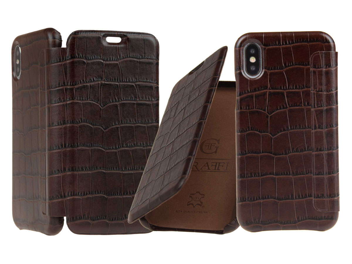 Graffi Oyster Croco Bruin Leer - iPhone X/Xs hoesje