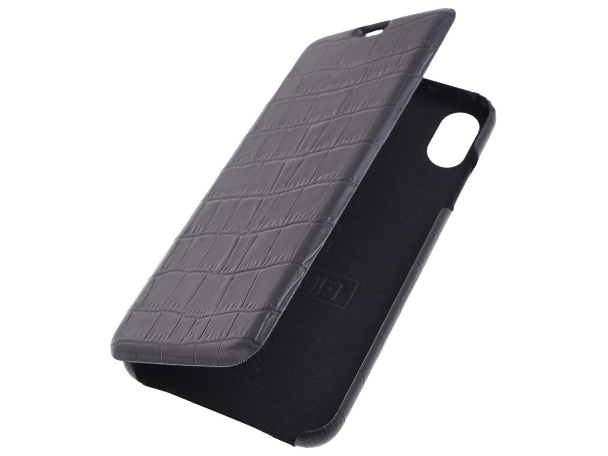 Graffi Oyster Croco Grijs Leer - iPhone XR hoesje