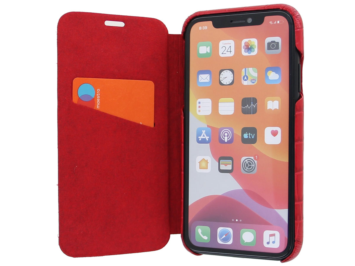 Graffi Oyster Croco Rood Leer - iPhone 11 hoesje