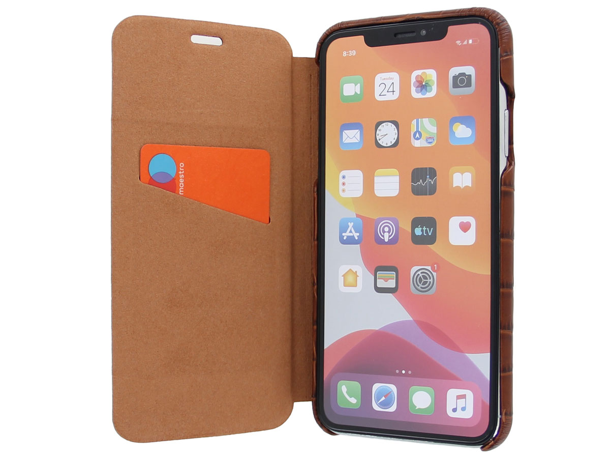 Graffi Oyster Croco Cognac Leer - iPhone 11 Pro Max hoesje
