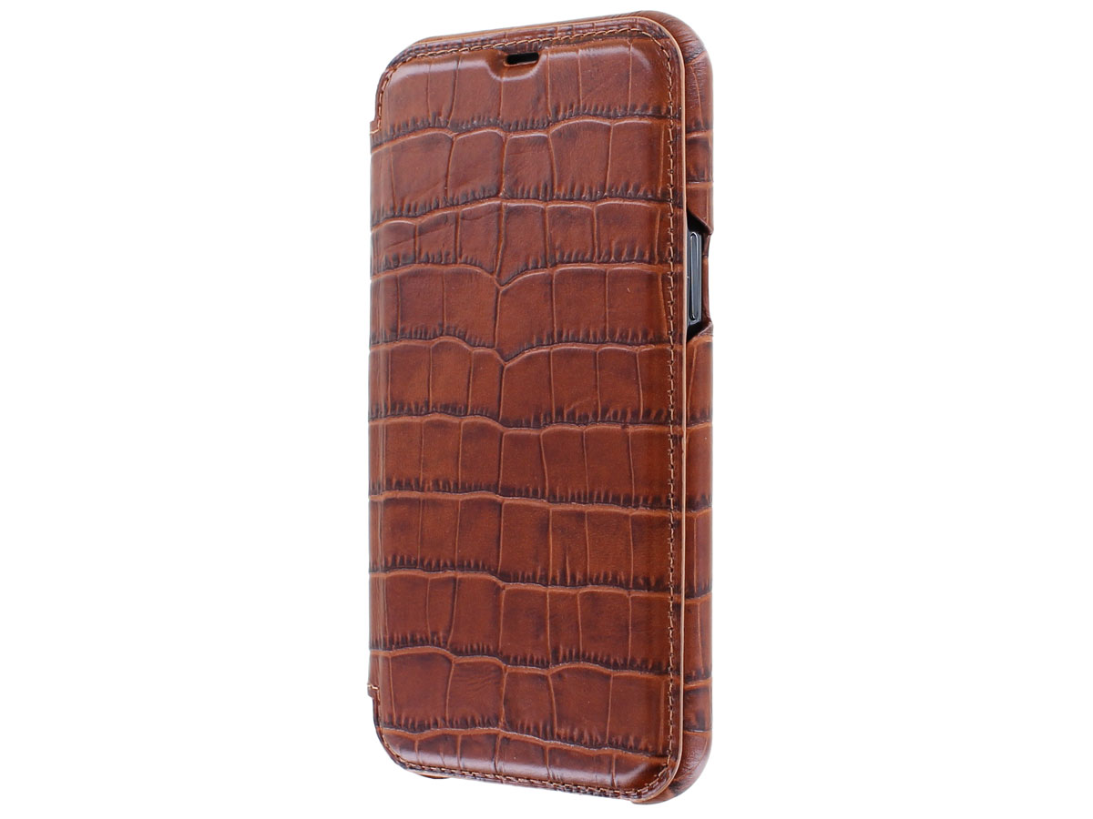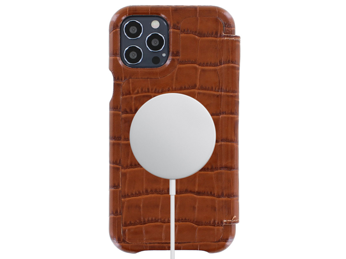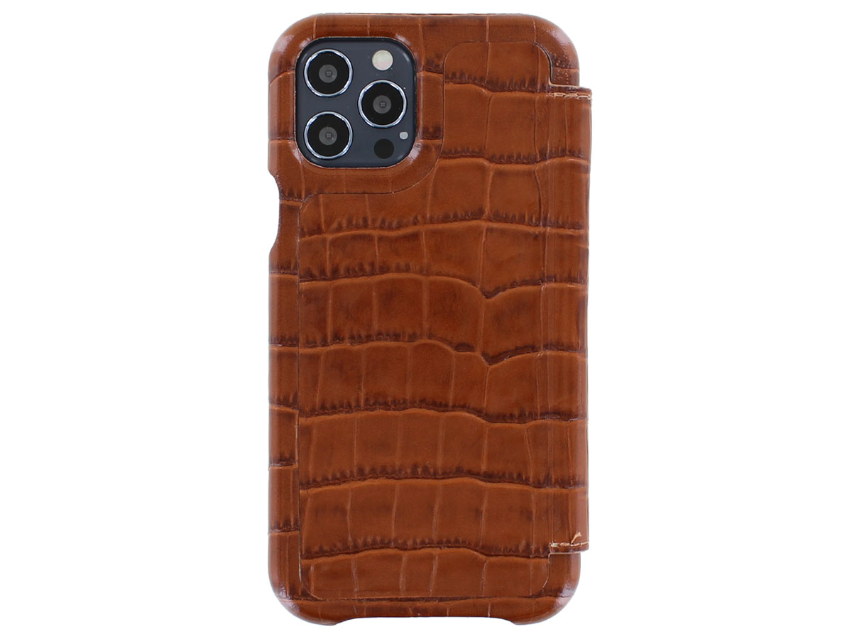 Graffi Oyster Croco Cognac Leer - iPhone 12/12 Pro hoesje