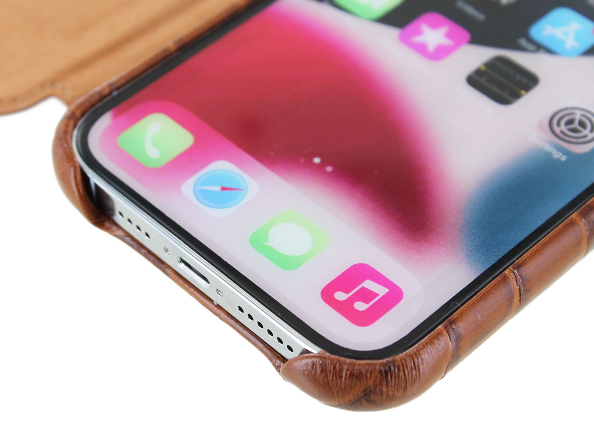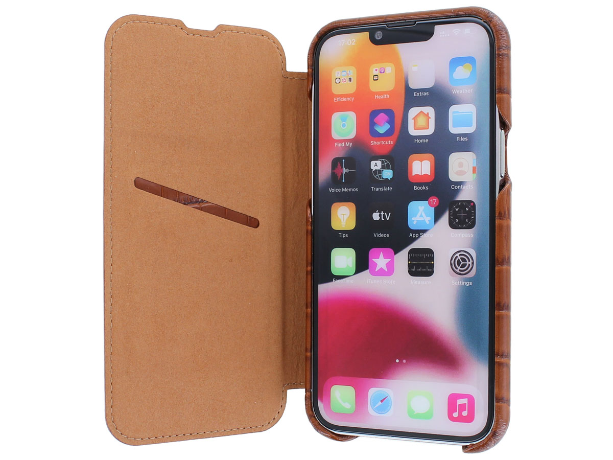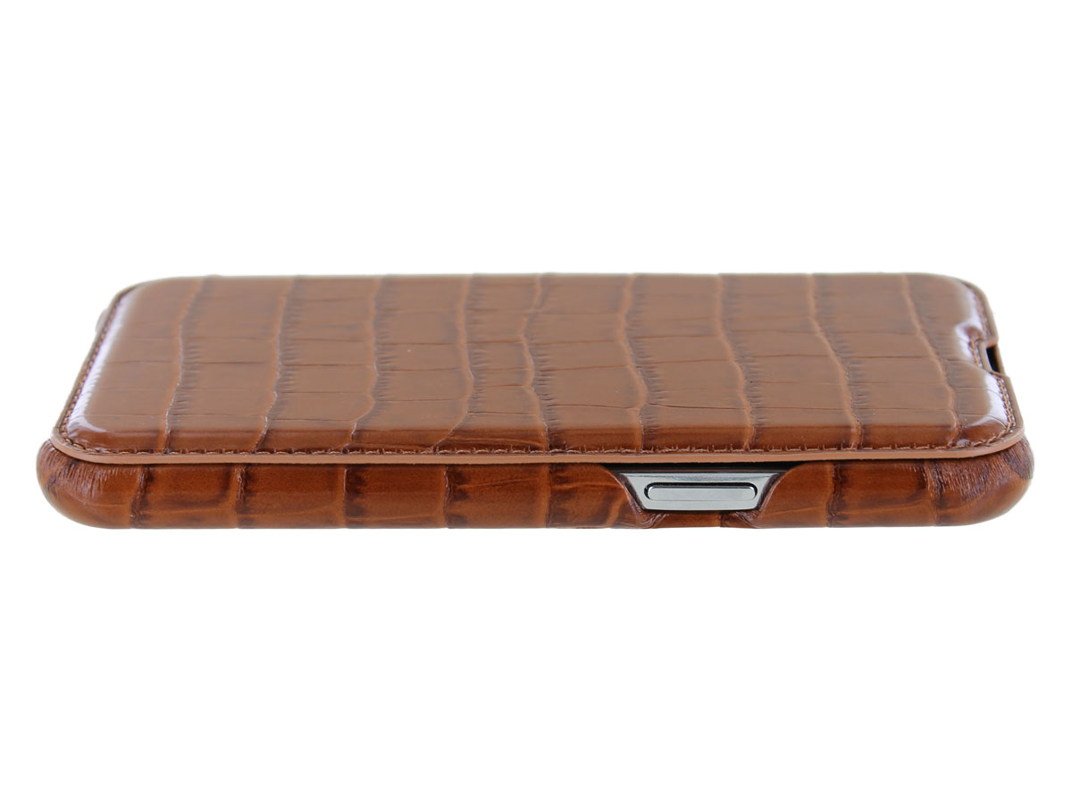 Graffi Oyster Croco Cognac Leer - iPhone 12/12 Pro hoesje