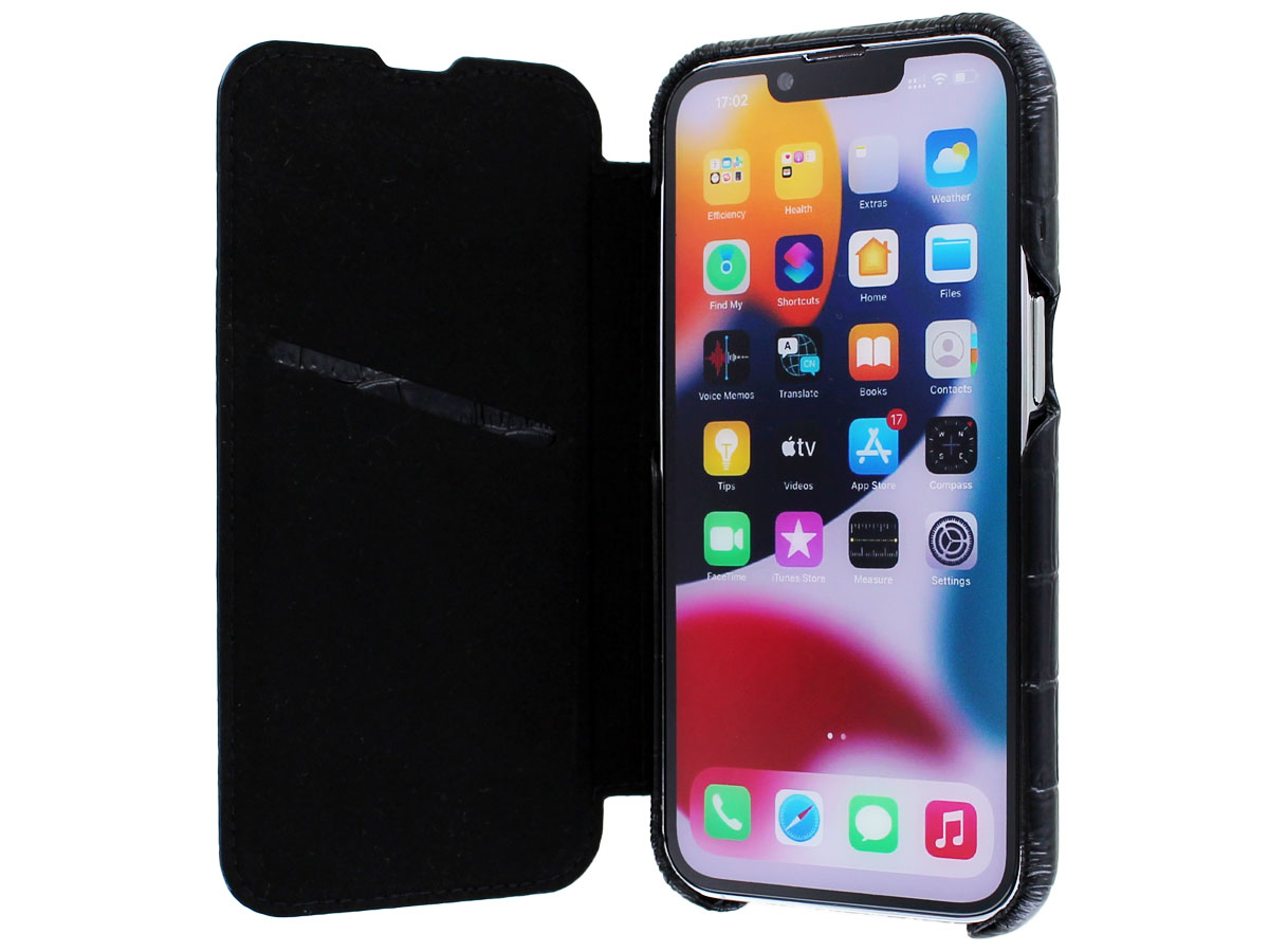 Graffi Oyster Croco Zwart Leer - iPhone 13 hoesje
