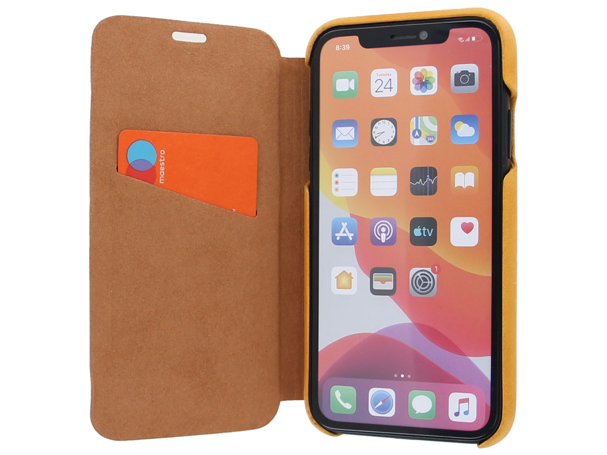 Graffi Oyster Folio Geel Leer - iPhone 11 hoesje