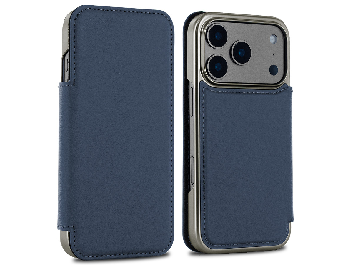 Greenwich Blake Leather Folio Portofino Blue/Gunmetal - iPhone 17 Pro Hoesje