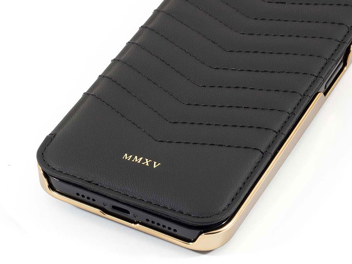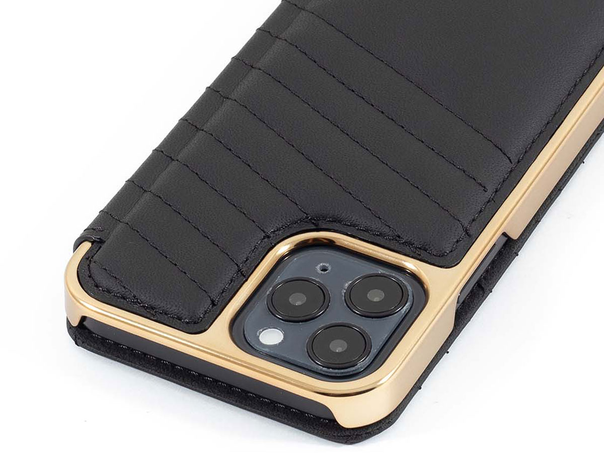 De Greenwich Portland Folio is pure verwennerij voor u én uw iPhone 12/12 Pro. De handgemaakte case is vervaardigd uit het beste leer dat er bestaat en behoort zonder twijfel tot de mooiste hoesjes ter wereld. In deze uitvoering is Beluga zwart leder gecombineerd met een donkergrijze Alcantara voering en een goudkleurige polycarbonaat shell om de iPhone. Het leer is voorzien van een fraaie Chevron Stitch.