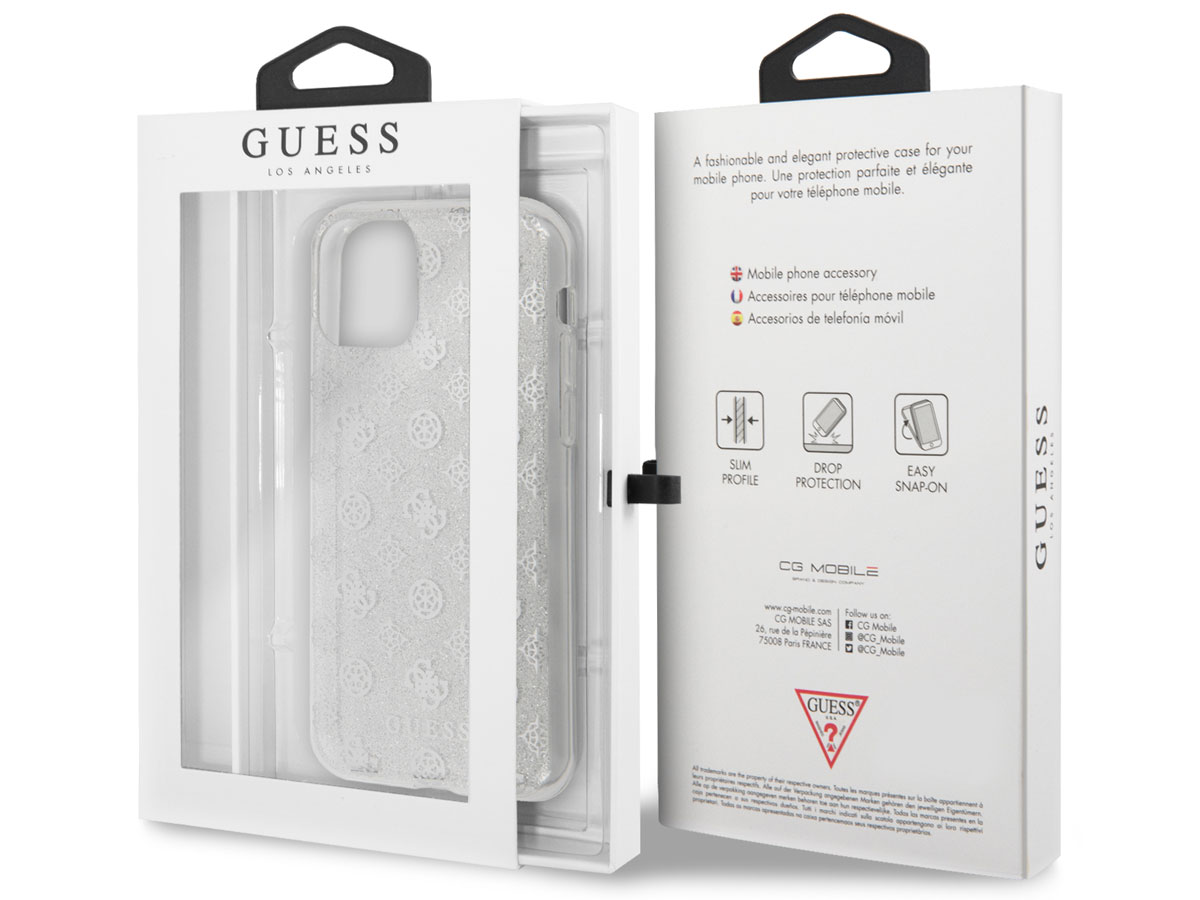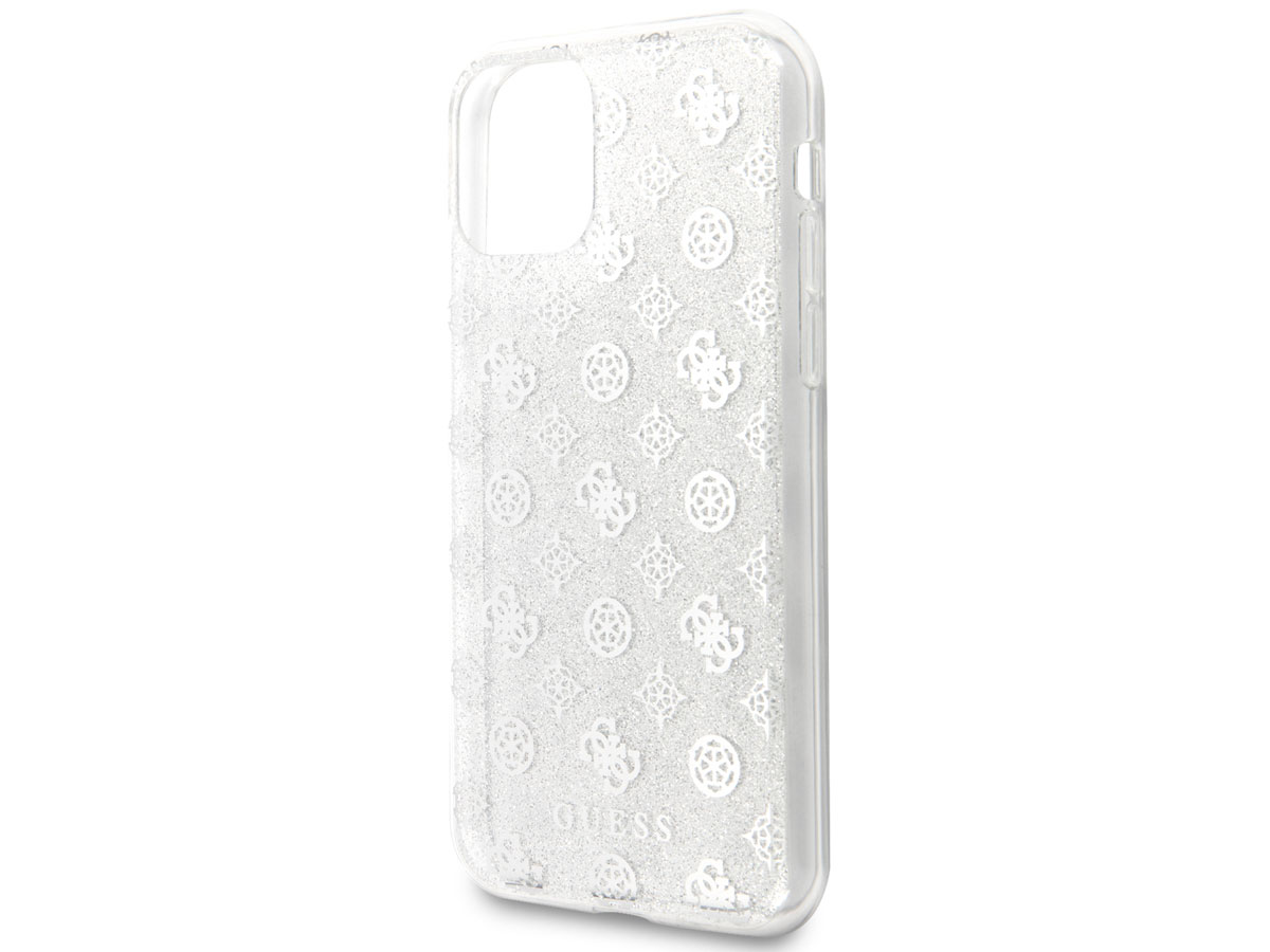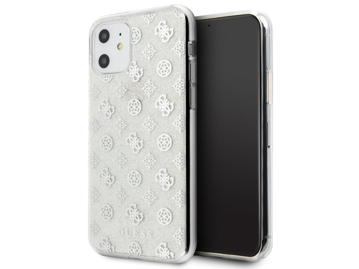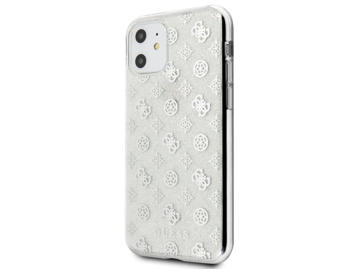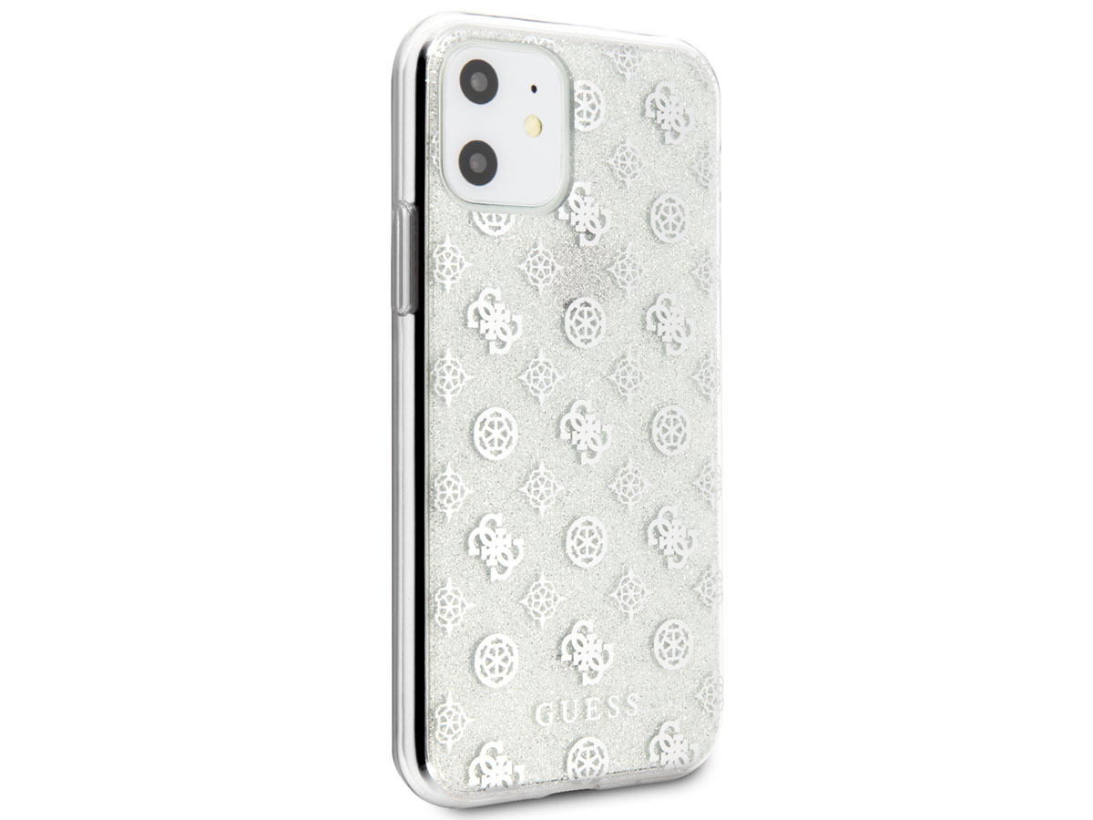 Guess 4G Monogram Glitter TPU Case Zilver - iPhone 11/XR hoesje